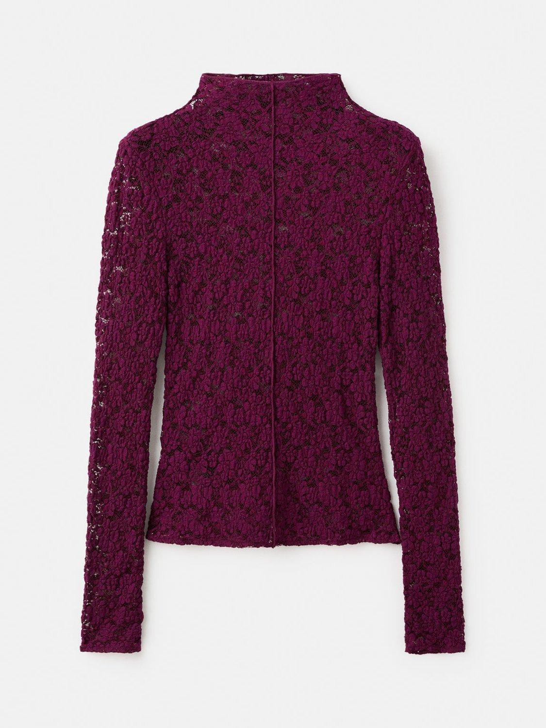 A jersey top by Mango, made from a comfortable cotton-rich fabric. Featuring a high neck and long sleeves, it is fashioned with intricate lace detailing, keeping you comfortable from brunch to evening plans.