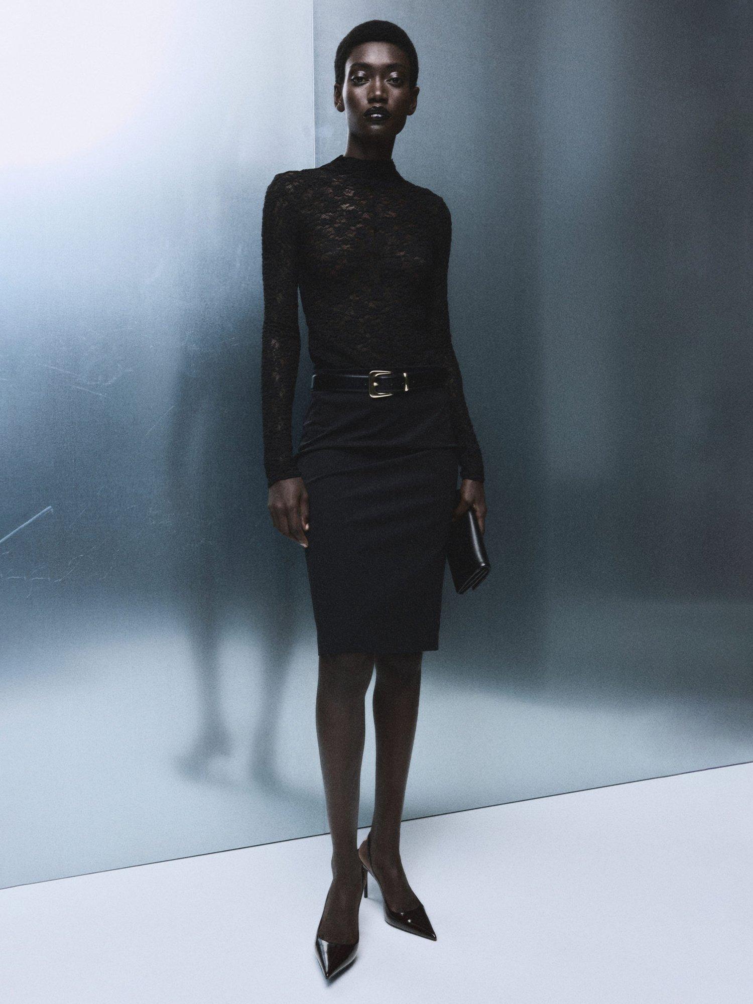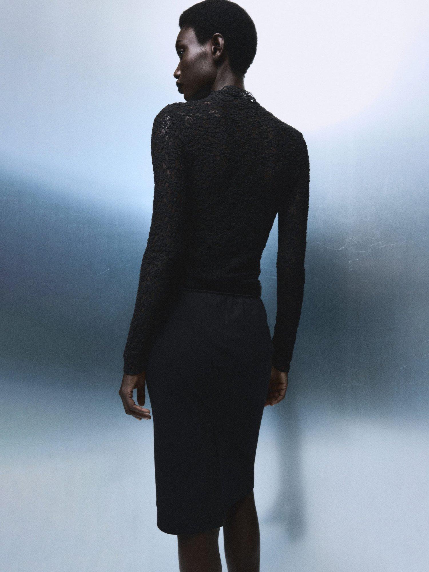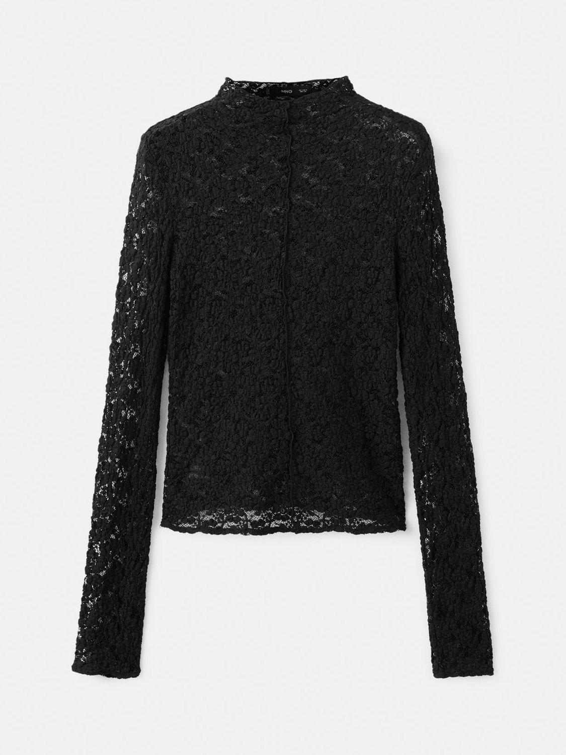 A jersey top by Mango, made from a comfortable cotton-rich fabric. Featuring a high neck and long sleeves, it is fashioned with intricate lace detailing, keeping you comfortable from brunch to evening plans.