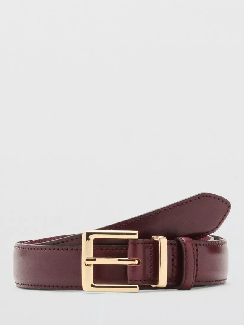 MangoSelma Leather Belt, Dark Red