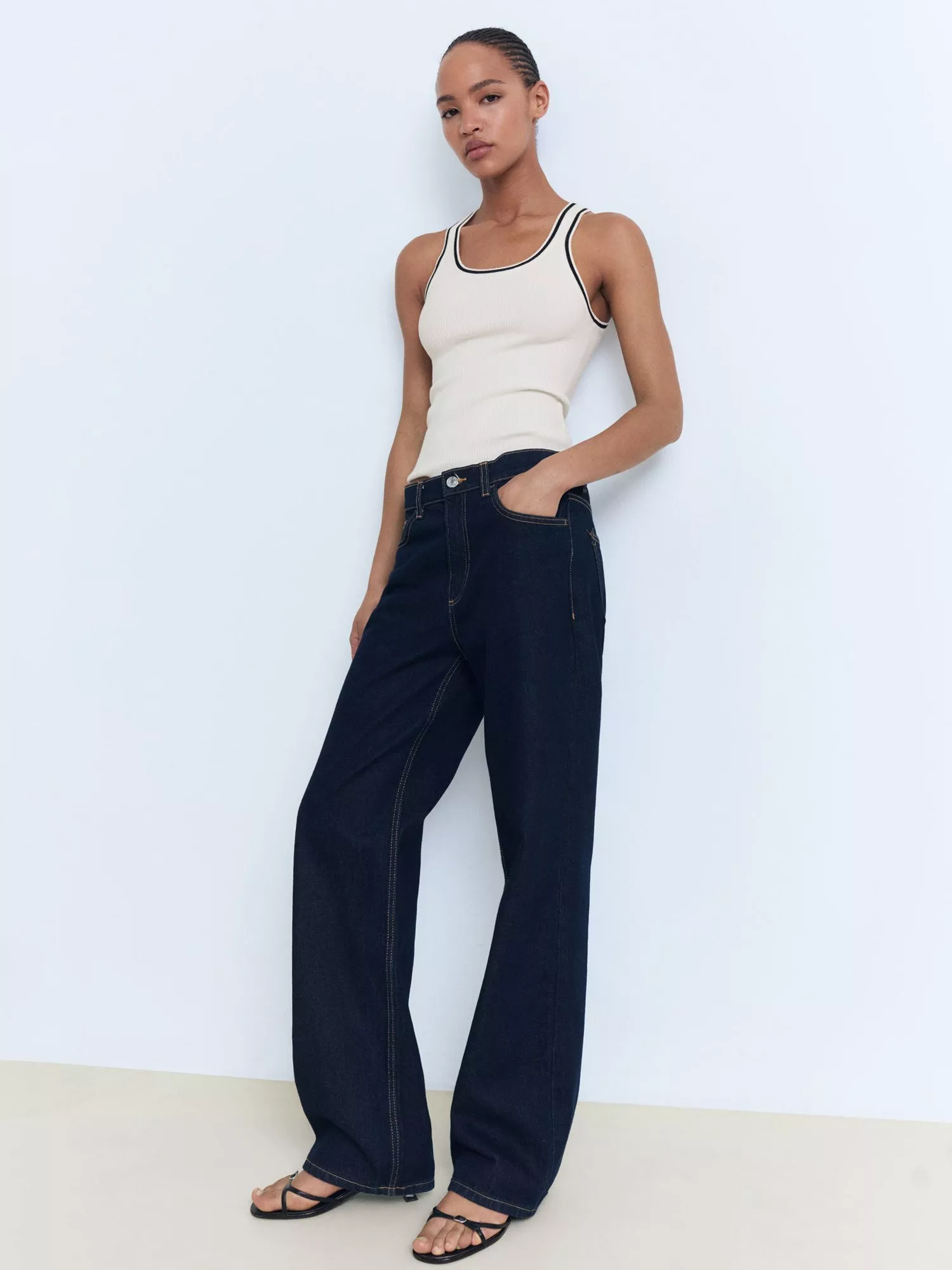 Simple and versatile in nature, this sleeveless tank top by Mango is framed with a contrast trim scooped neck.