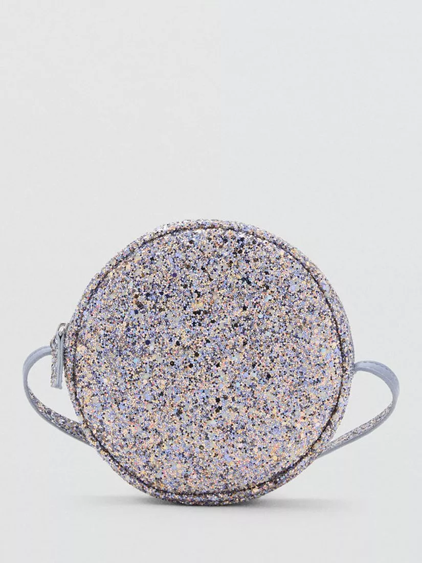MangoSharpay Round Glitter Crossbody Bag, Light Pastel Blue