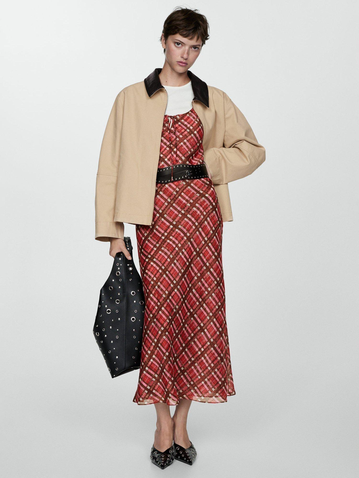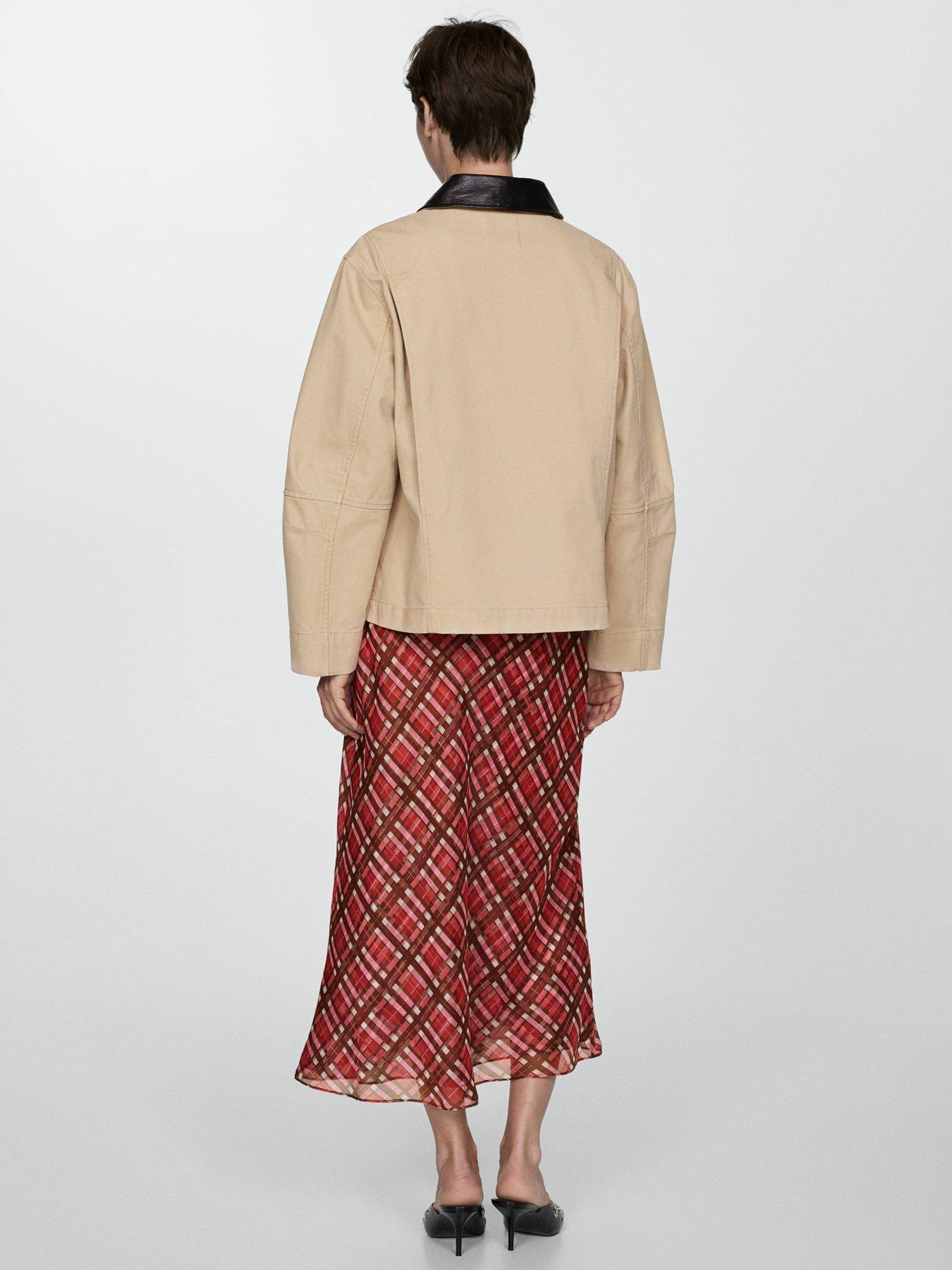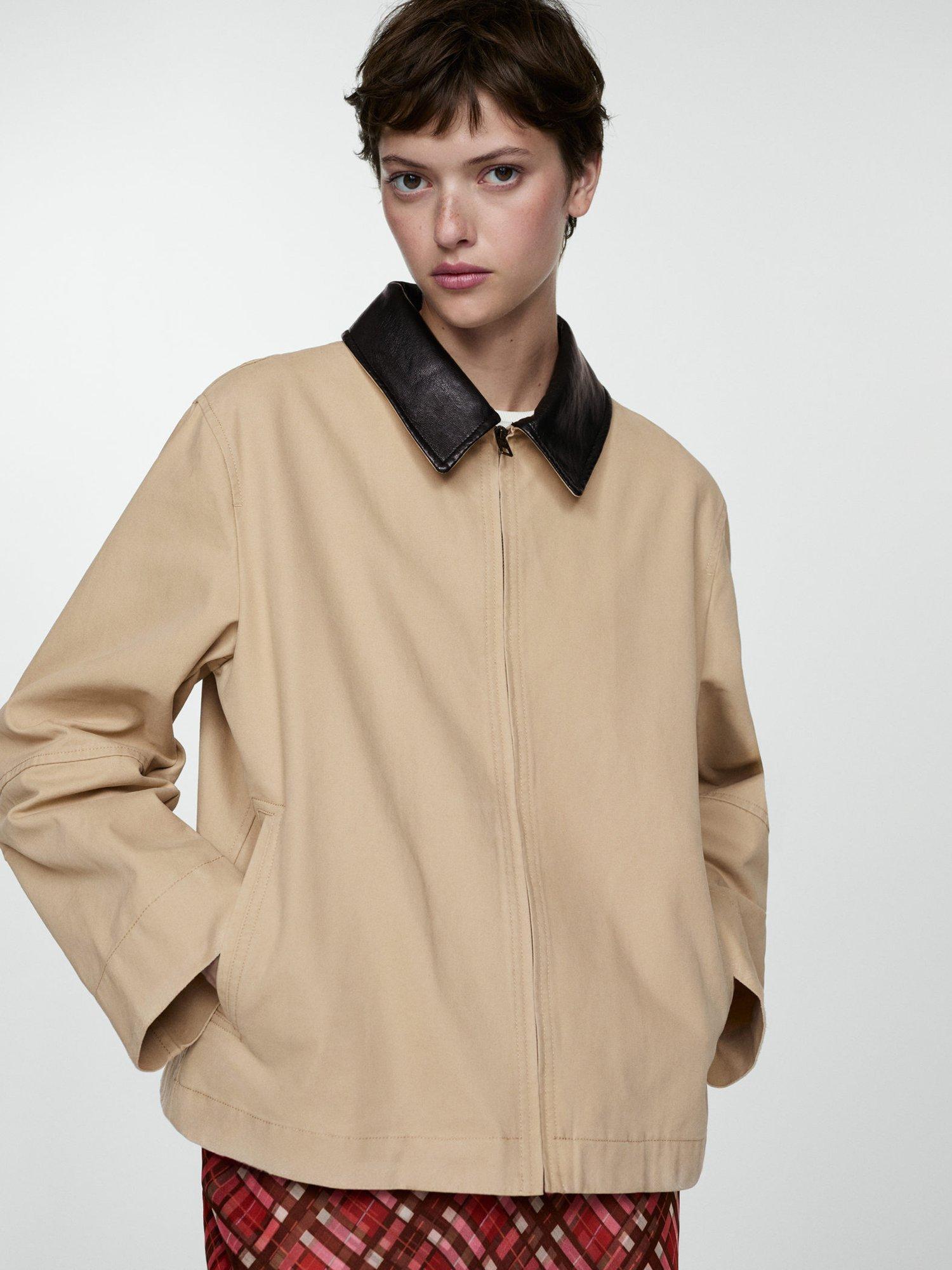 Working as an overlay for a number of new-season looks, this shacket by Mango features trench-inspired design details.