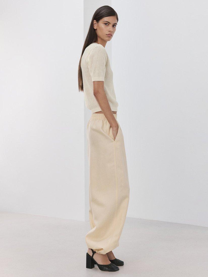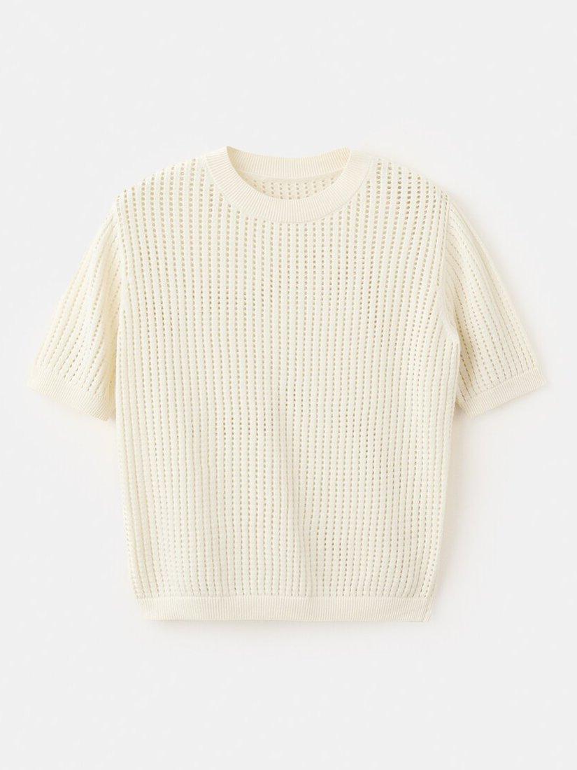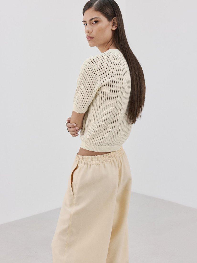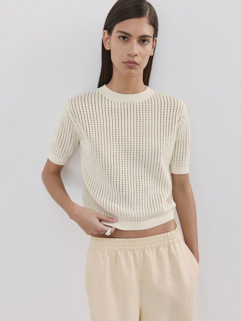 Formed using pure cotton, this fine crew neck knit from Mango skims the body with a soft drape and sculpted short sleeves for relaxed wear.