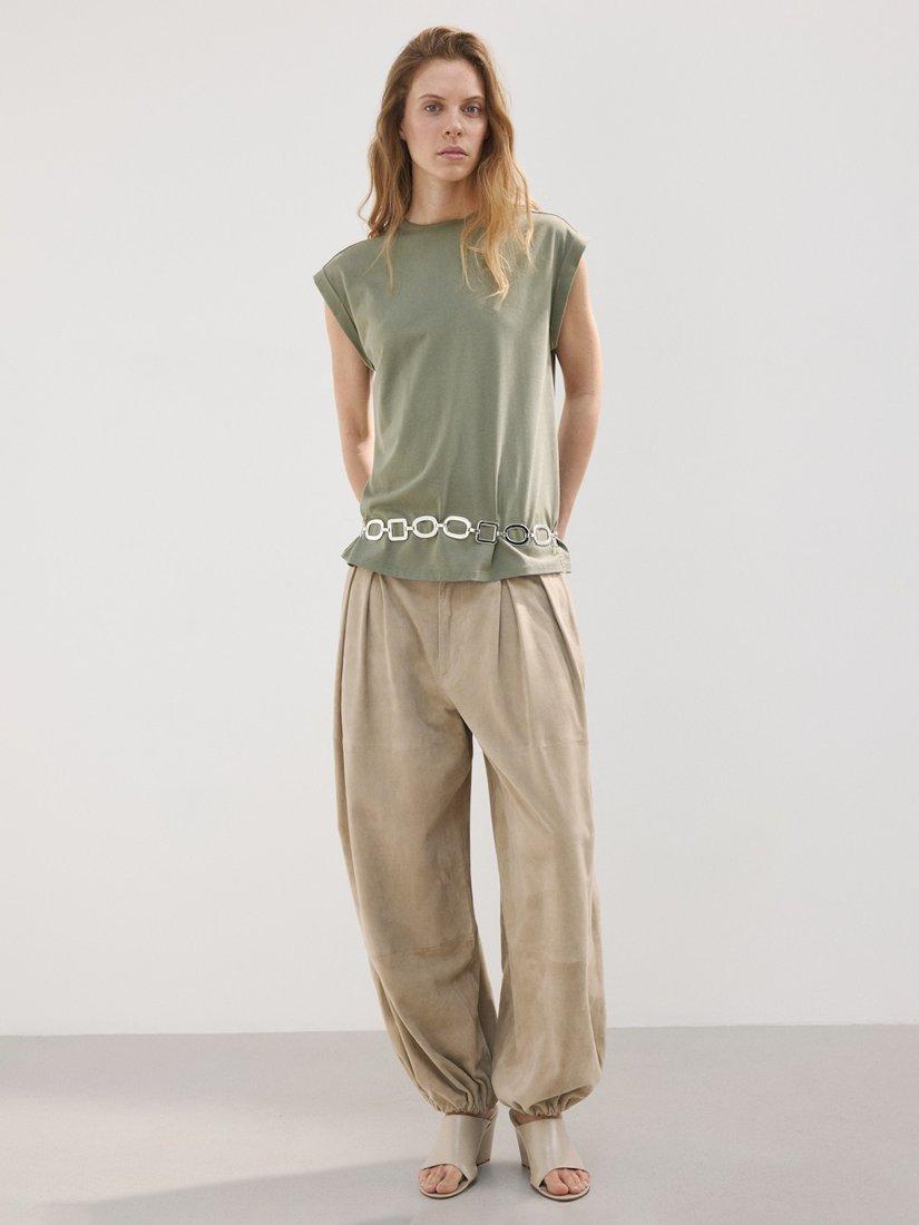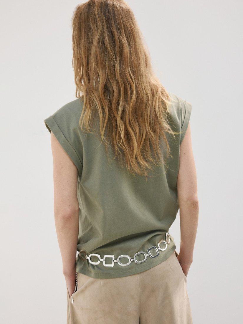 Casual days call for this cotton T-shirt, designed with a classic crew neck and shoulder pads for easy layering or wearing solo in warmer weather.