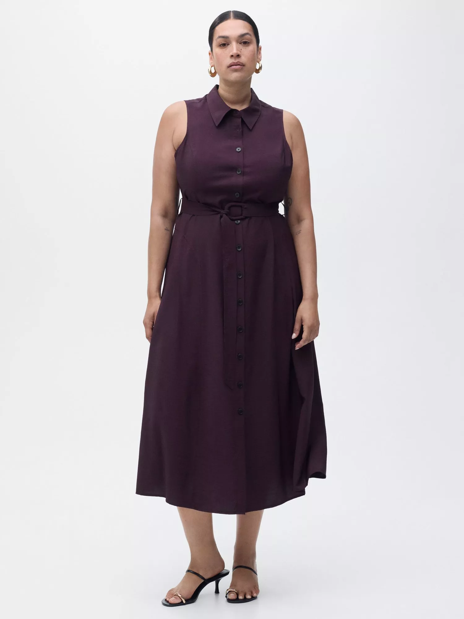 A shirt midi dress made for everyday ease. Clever collar detail meets sleeveless comfort, allowing you to move freely wherever the day takes you.