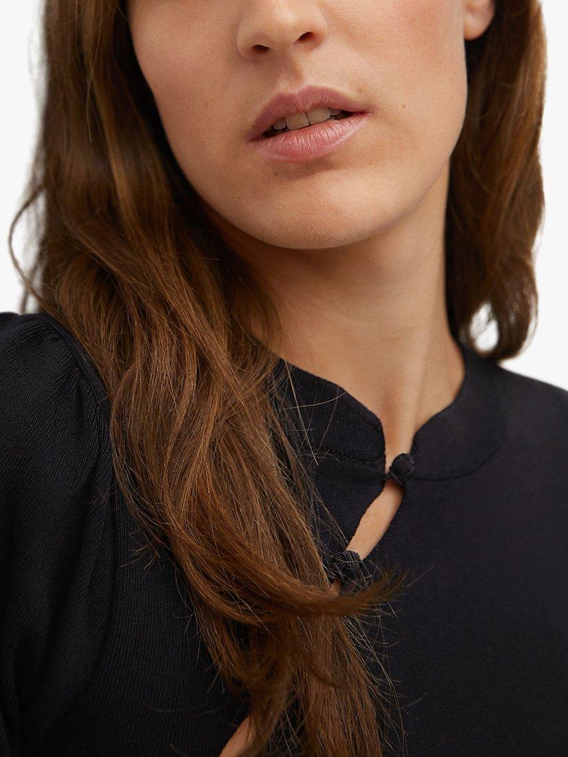 This fine knit dress from Mango is a throw-on style with elevated detail. Subtle puff sleeves give it structure while the rounded neckline is finished with off-centre buttons for a smart finish.