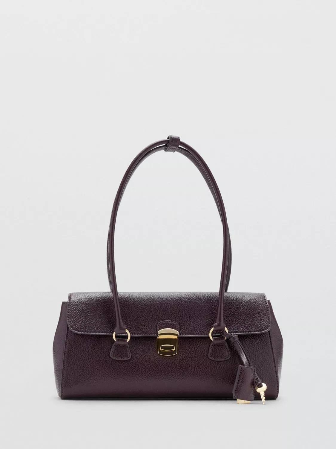 MangoSiena Faux Leather Bowling Bag, Dark Red