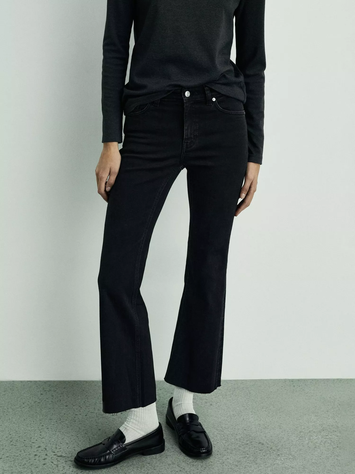Descending into a flared silhouette, these mid rise jeans by Mango have a timeless denim finish and are cropped for a fresh look.