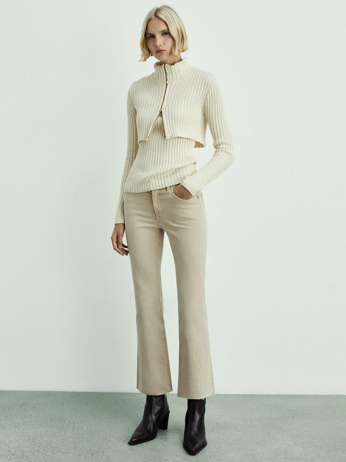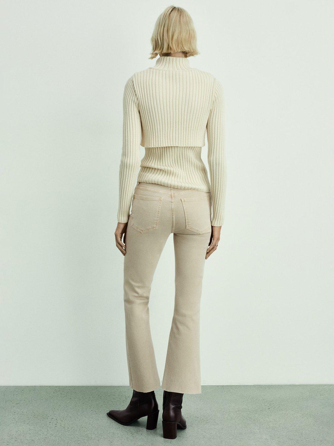 Inspired by flared silhouettes of the 70s, these high-waisted jeans by Mango are made with comfort in mind thanks to their soft cotton blend composition and are cropped for a contemporary finish.