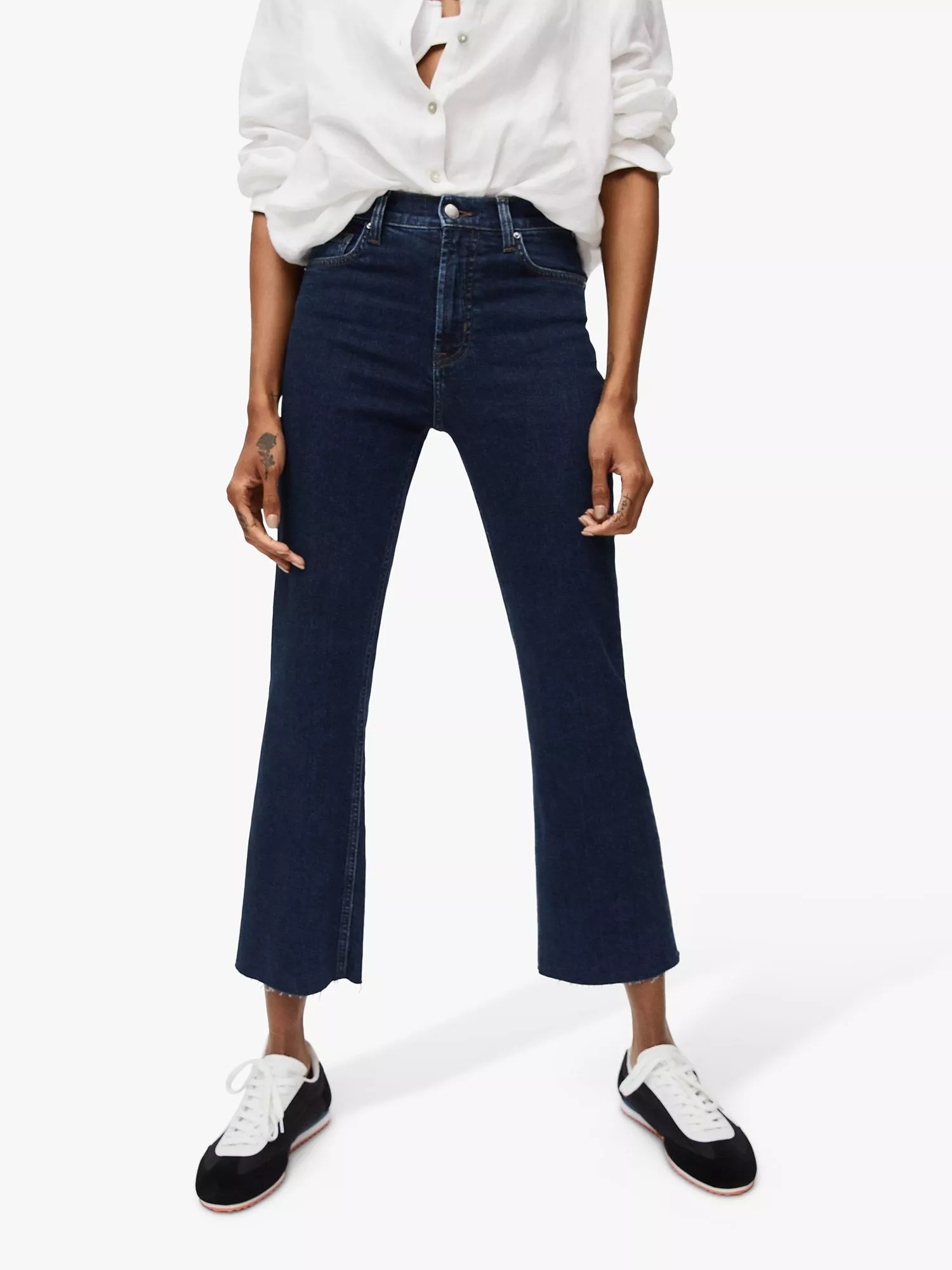 Flared for a nod to vintage trends, these mid rise jeans by Mango are made from a cotton blend for breathable wear and are cropped at the ankles for an on-trend finish.