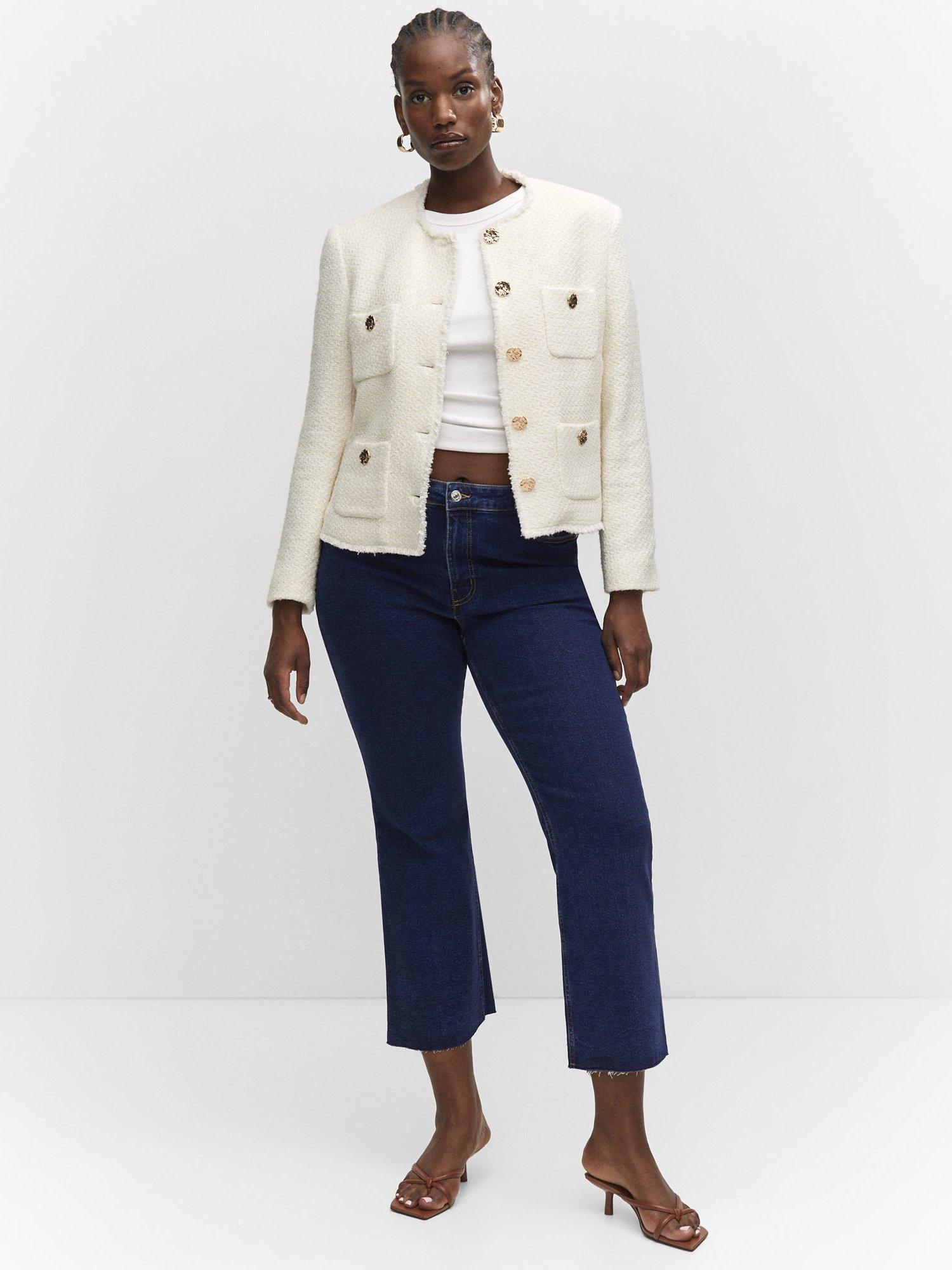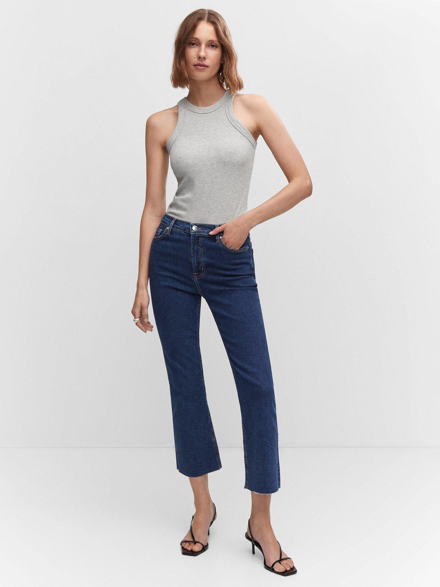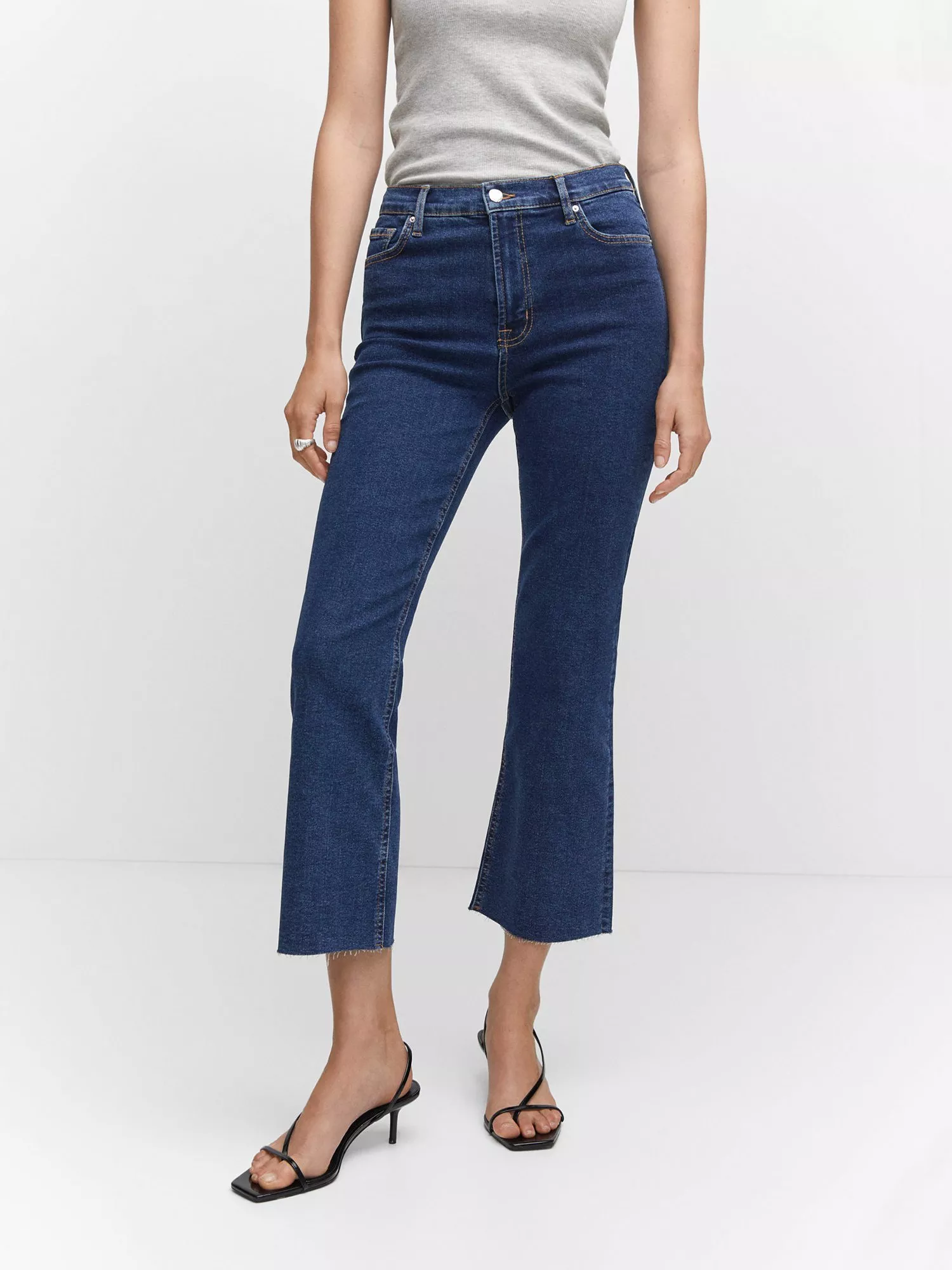 With a subtle flared hem, these retro mid rise jeans by Mango are made from a hard wearing cotton-blend and are cropped at the ankles.