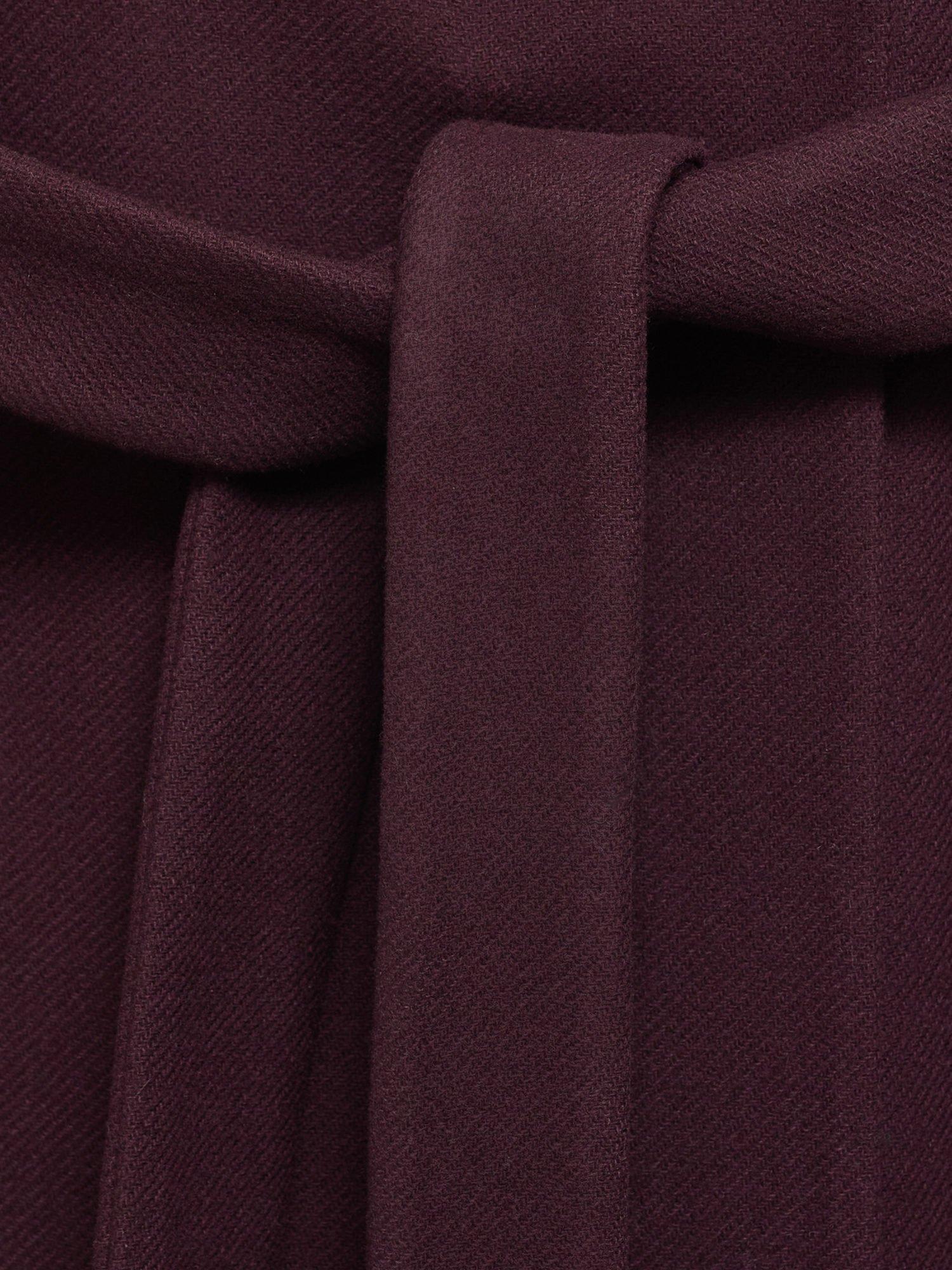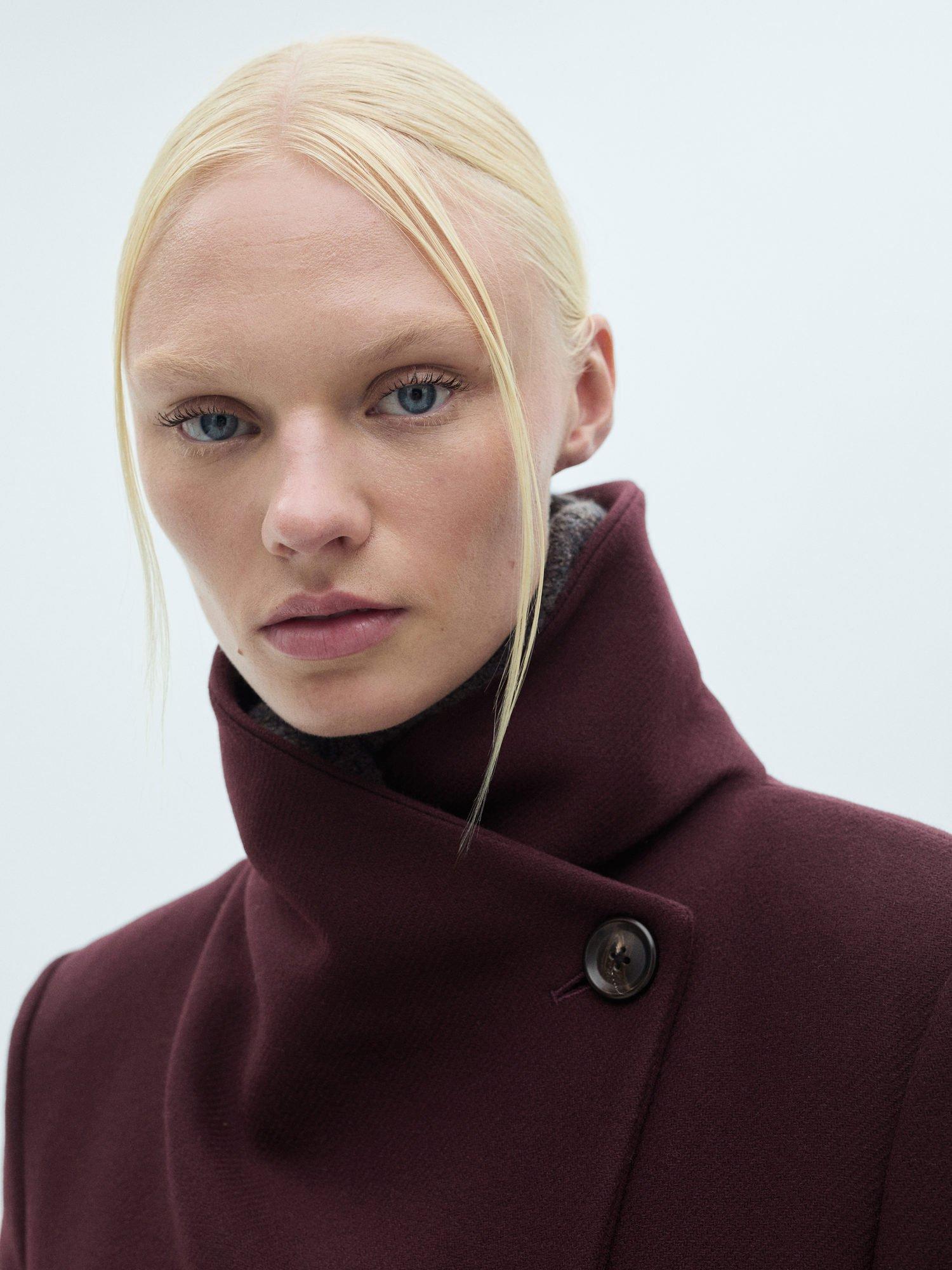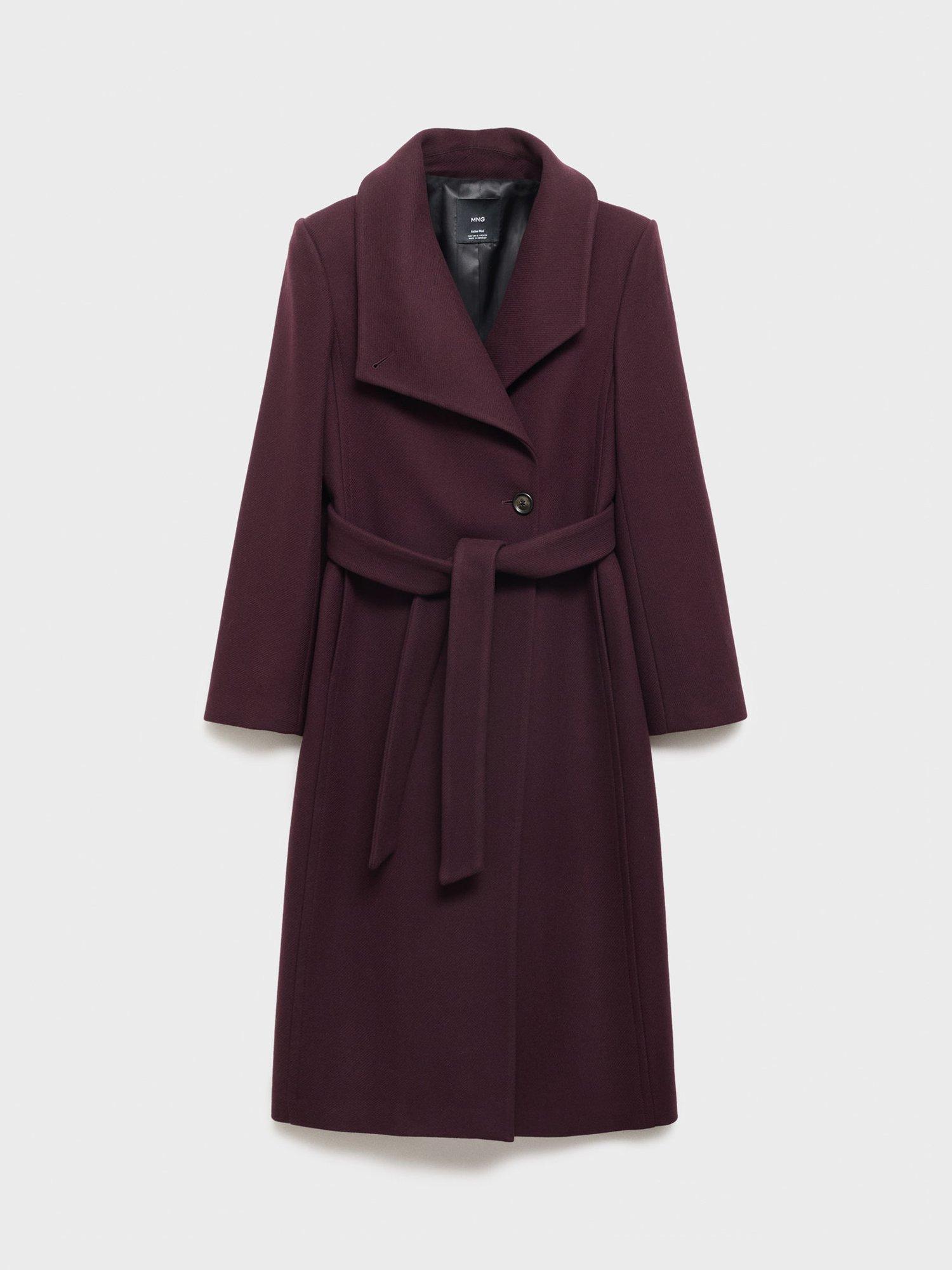 Framed with a refined funnel neckline and a belted waist detail, it is made from a luxury wool blend.