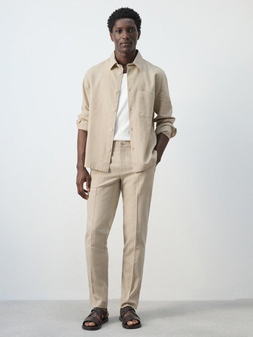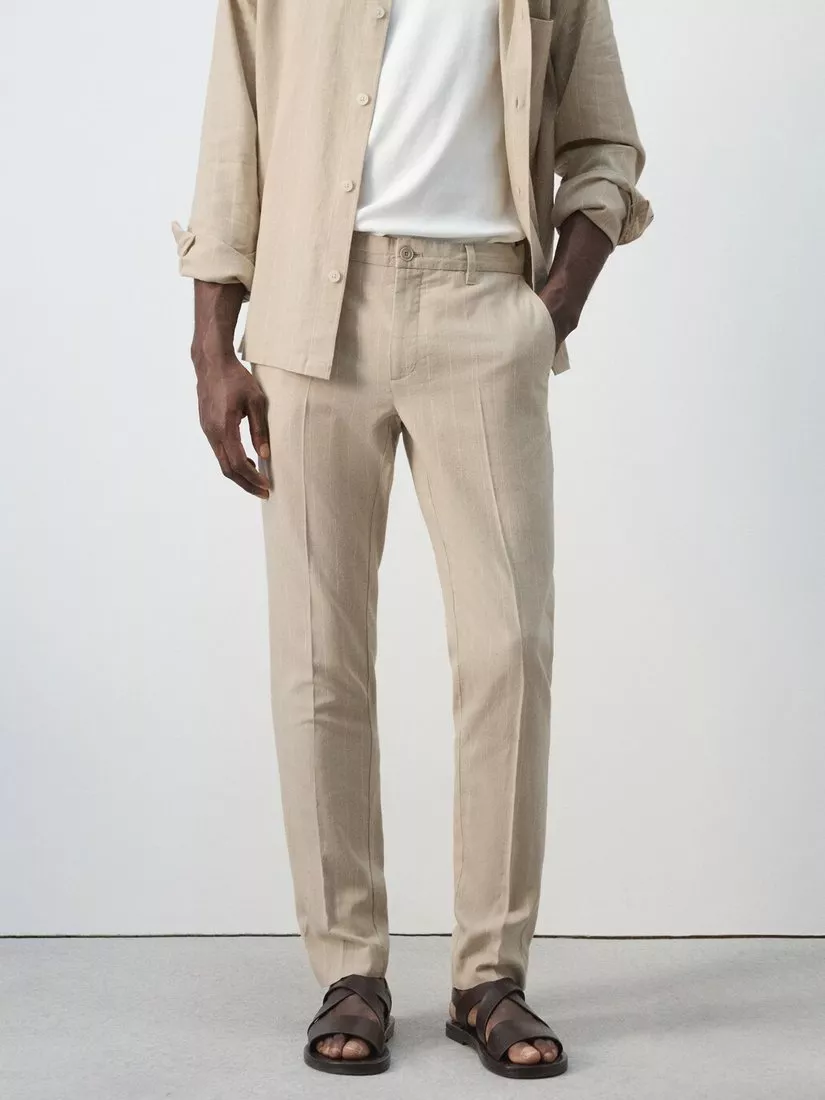 A pair of slim trousers from Mango in a breathable linen blend. Timeless and ready to be paired with anything.