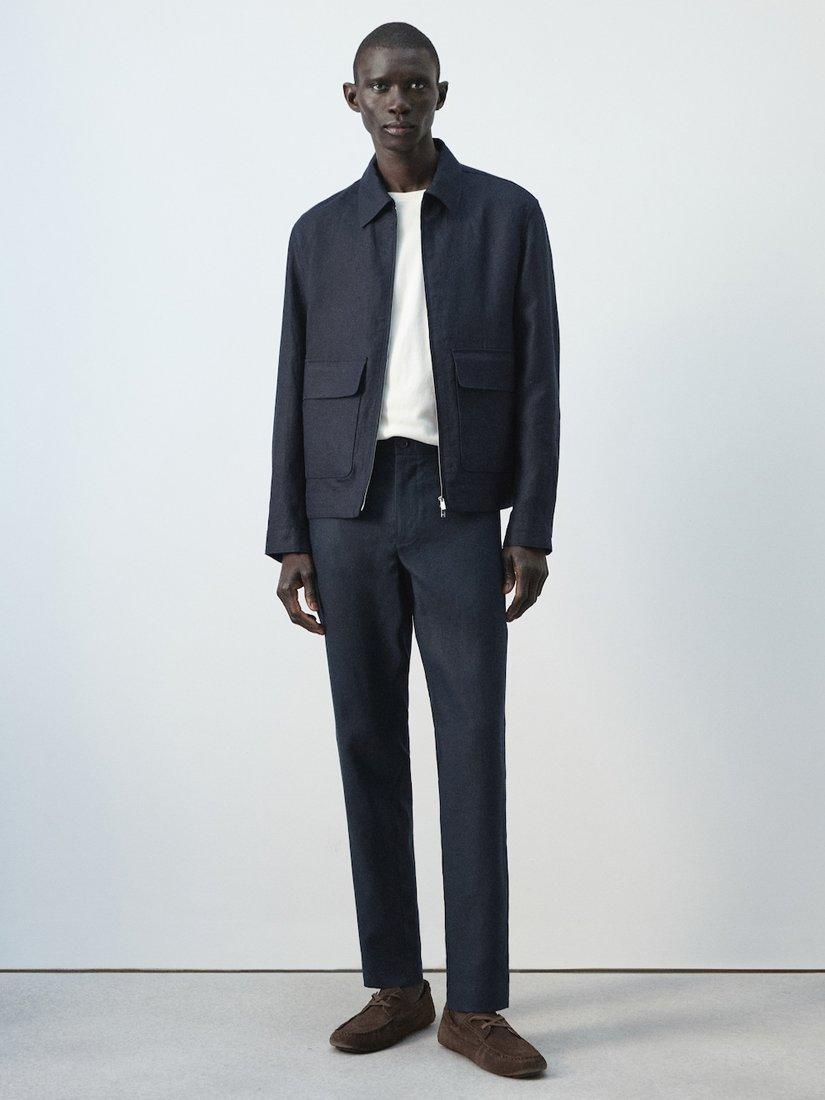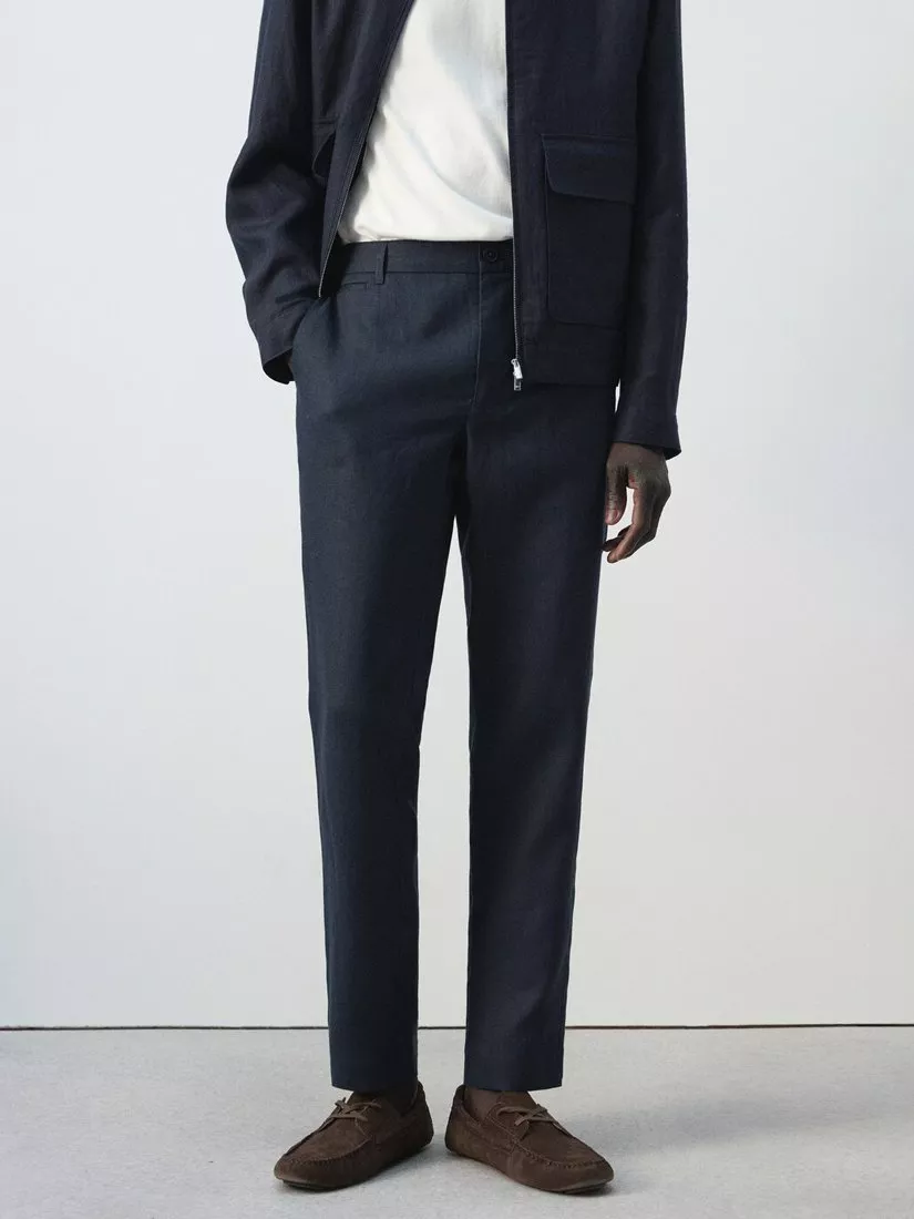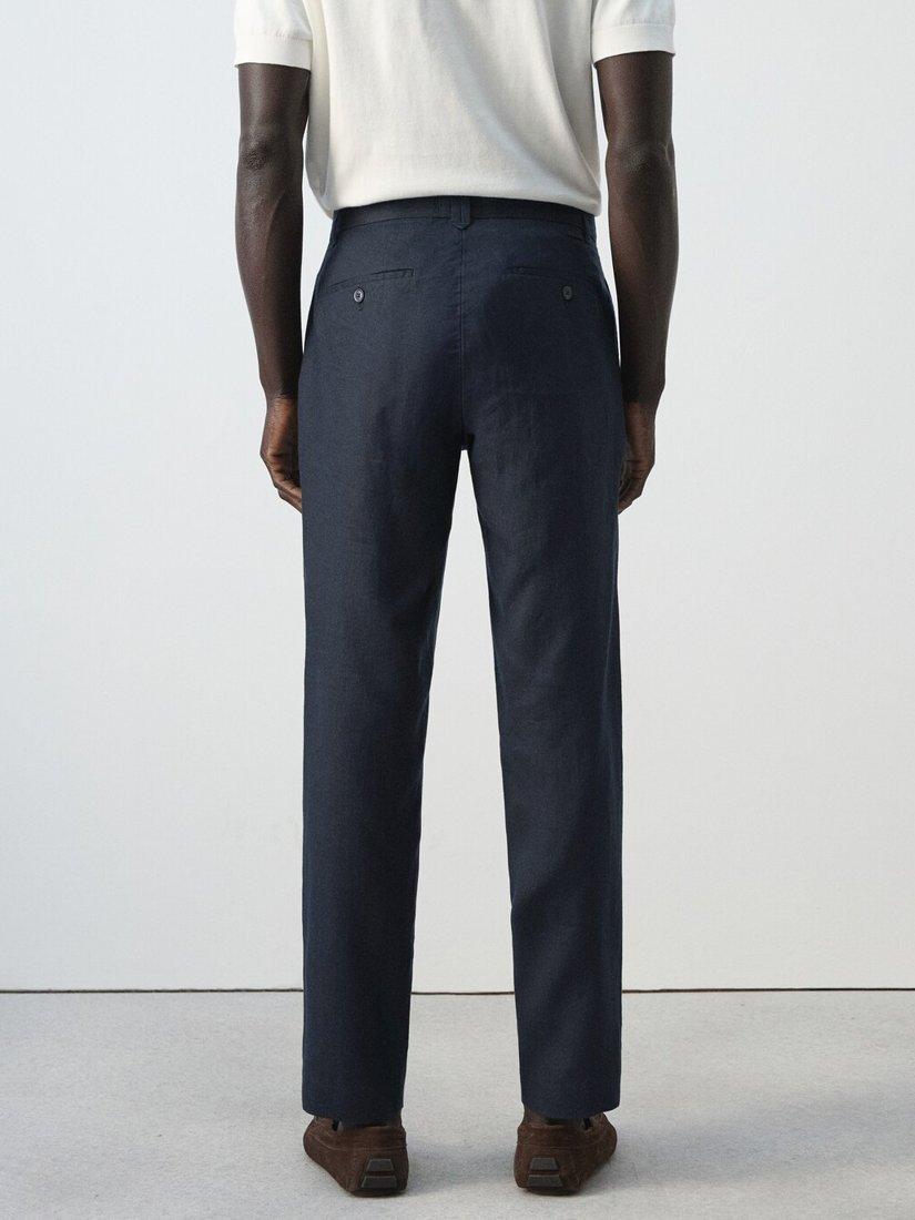 A pair of slim-leg chinos from Mango, cut from breathable linen with regular-length hems.