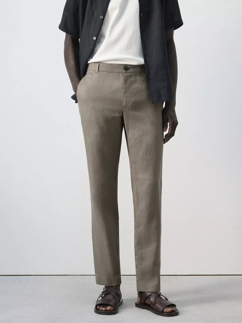 Step out in style with these slim fit trousers from Mango. Designed for comfort and ease, the breathable linen keeps you cool while smart tailoring ensures a sharp look for any laid-back outing. Practical pockets help keep your essentials close.