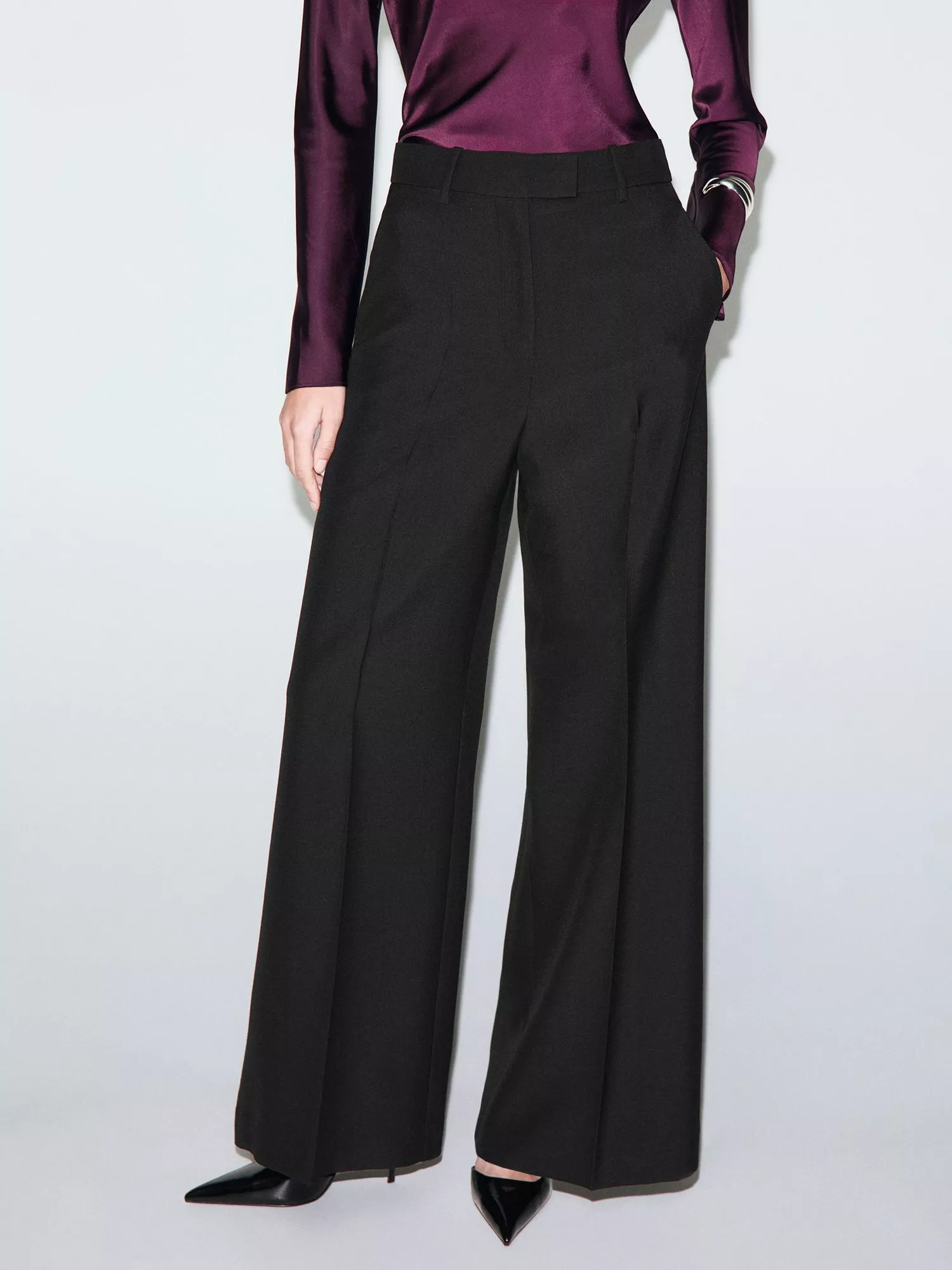 A tailored take on the of-the-moment wide leg trousers from Mango made from a warming wool blend. They sit high on the hips with hems that fall to a regular length.