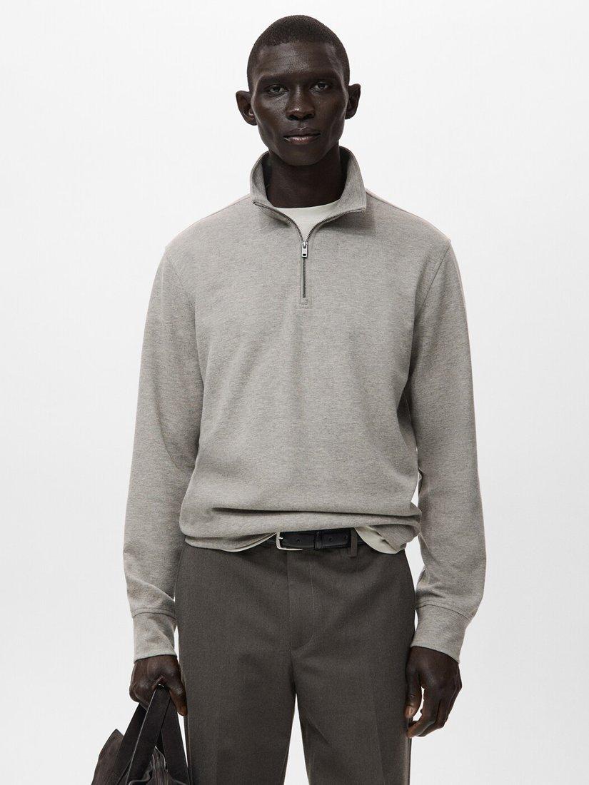 Soft-feel quarter-zip pullover with a relaxed silhouette and fluid drape, offering understated luxury for weekend ease and smart layered looks.