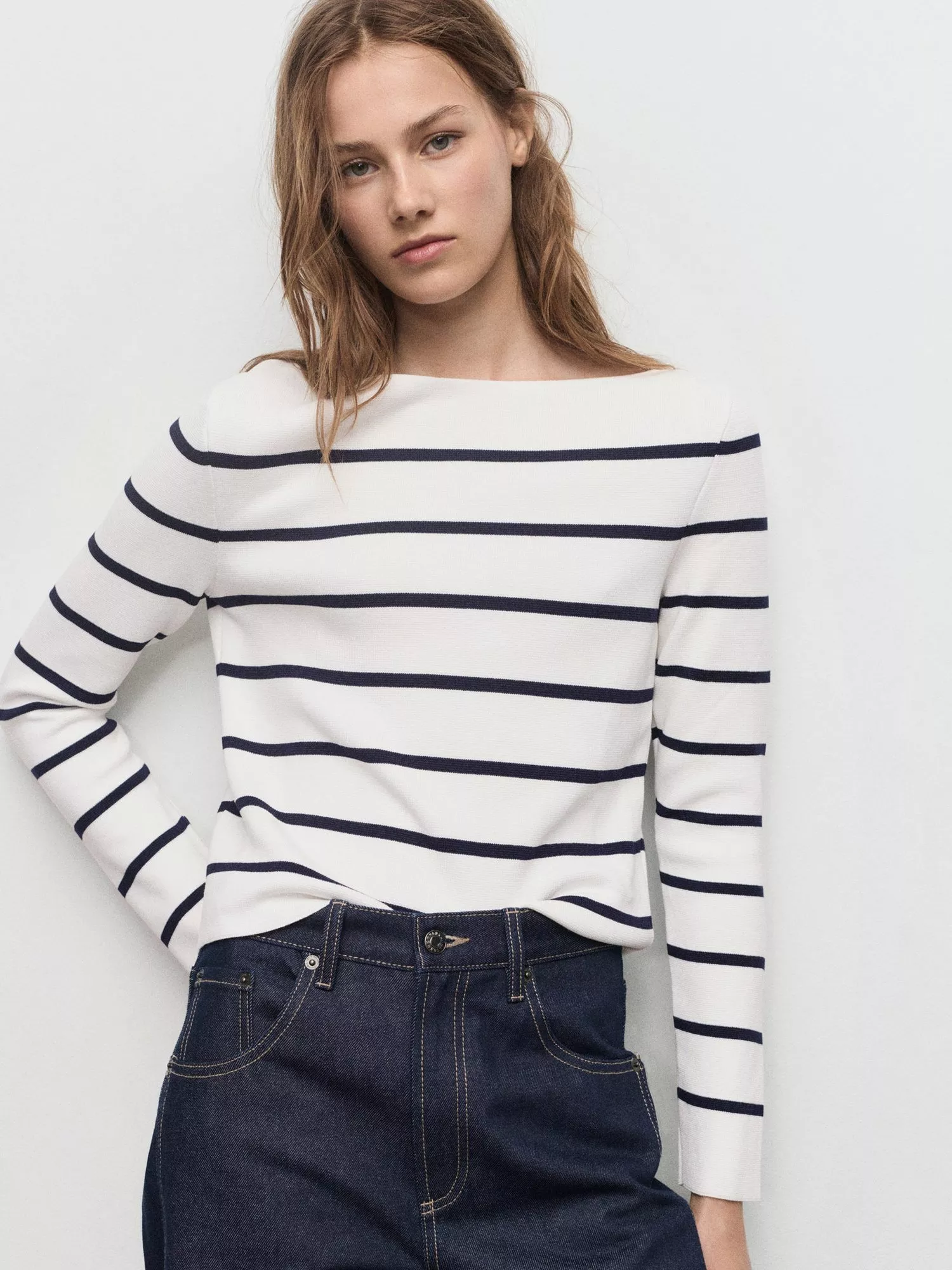 Stay sharp and comfortable in this fine knit striped jumper. The boat neck keeps your look fresh, while the lightweight design is perfect for layering at work or on weekends. Versatile style for any occasion.