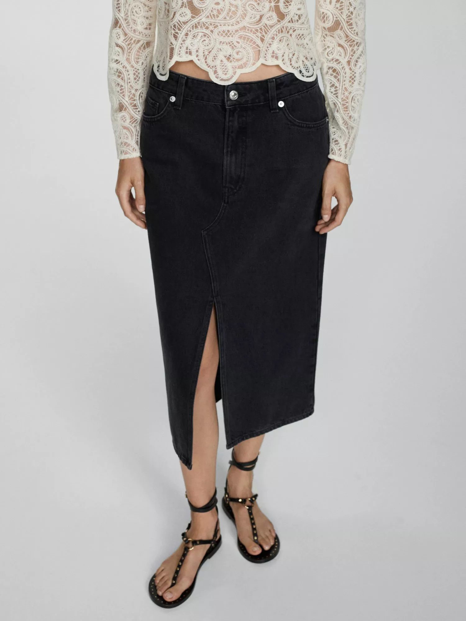 Inspired with a clean-lined profile, this midi skirt from Mango redefines your collection with the minimum of fuss.