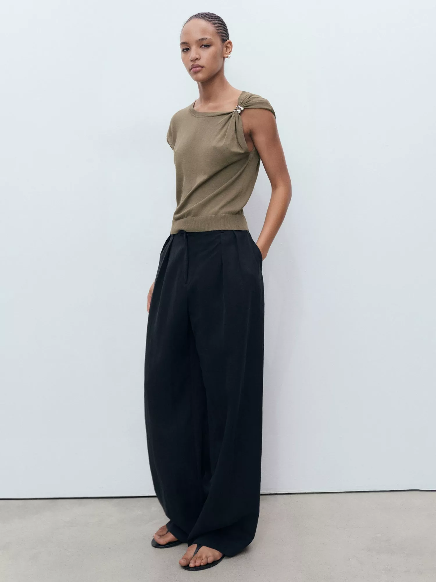 Find clever comfort in this fine knit top. Its soft viscose blend combines with unbalanced sleeves, making every outfit effortlessly stylish and refreshingly easy.