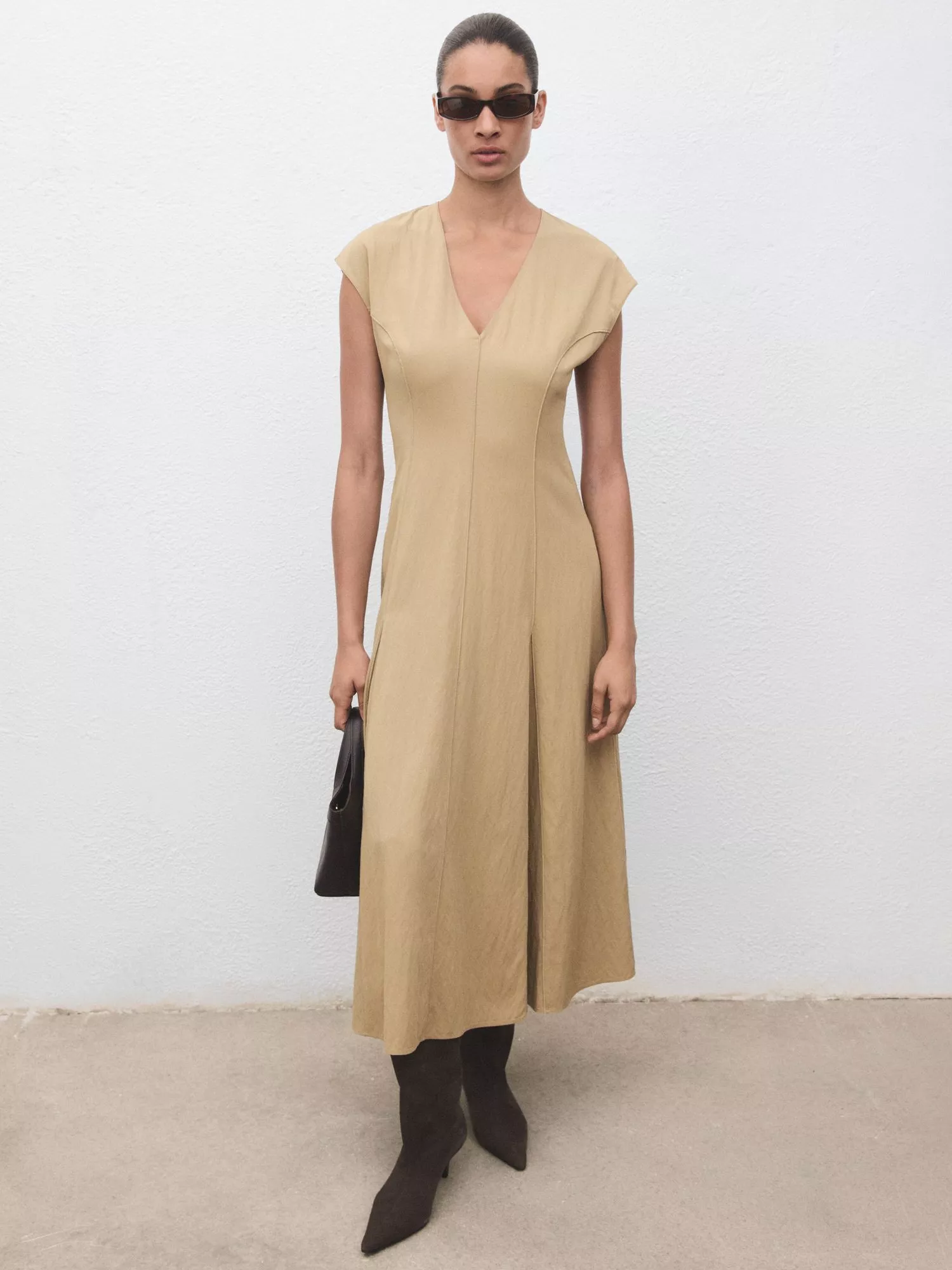 This pleat midi dress balances ease and elegance for your daytime plans. The A-line shape and cap sleeves offer comfort, while the V-neck adds character. It adapts to your mood and pairs easily with your favourite accessories.