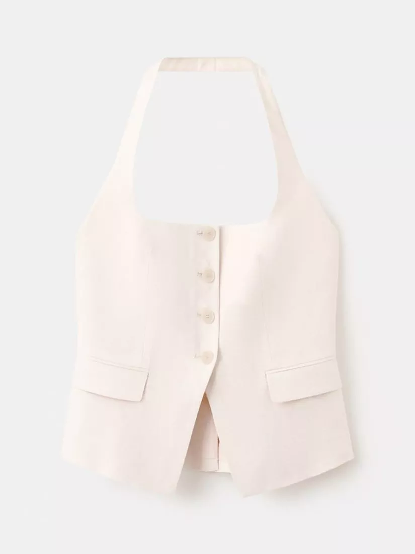 A sleek, minimalist sleeveless vest featuring a clean V-neckline and front button closure. Tailored with subtle pocket details, it offers a polished yet modern look that pairs effortlessly with both casual and formal outfits.