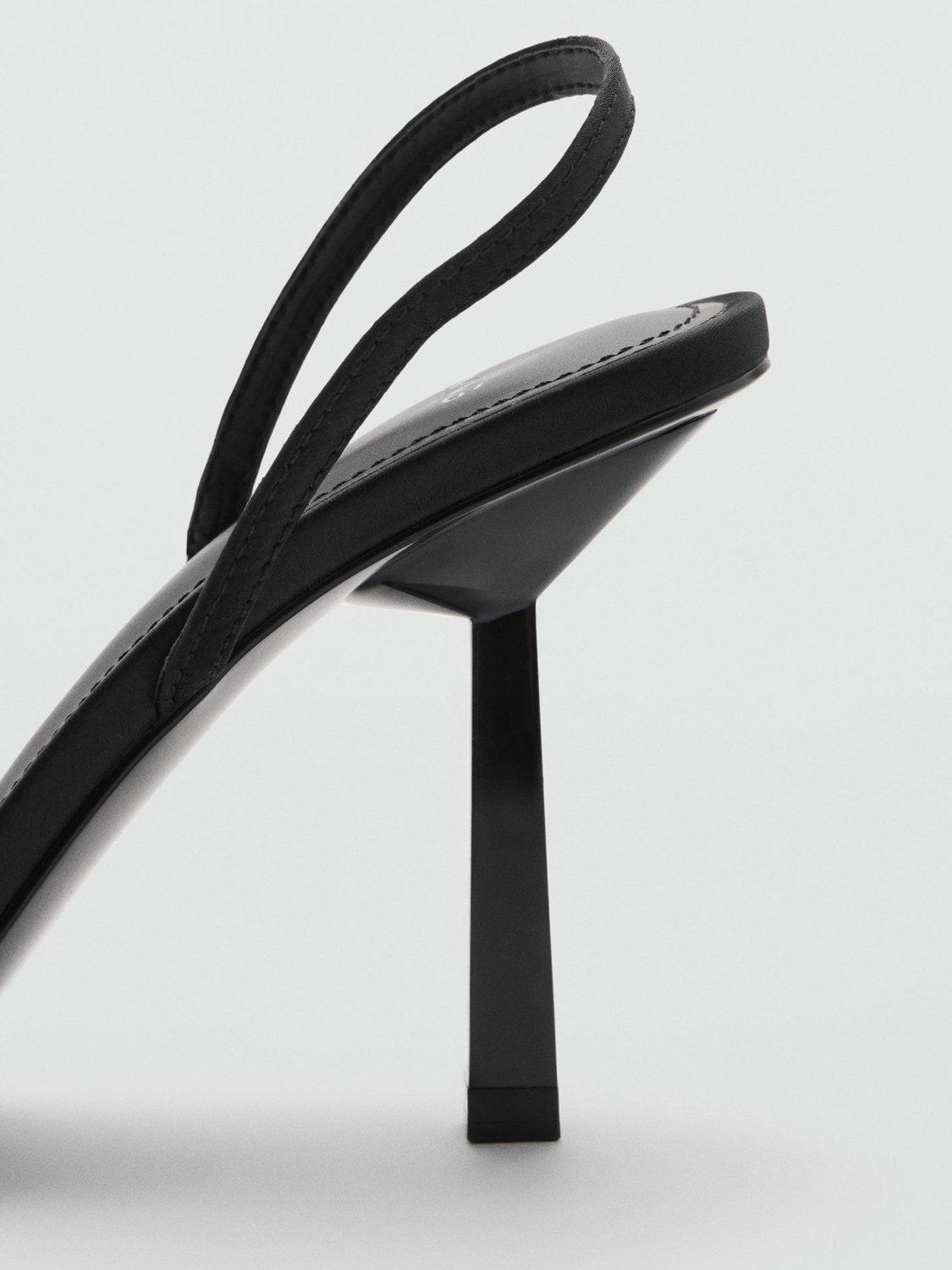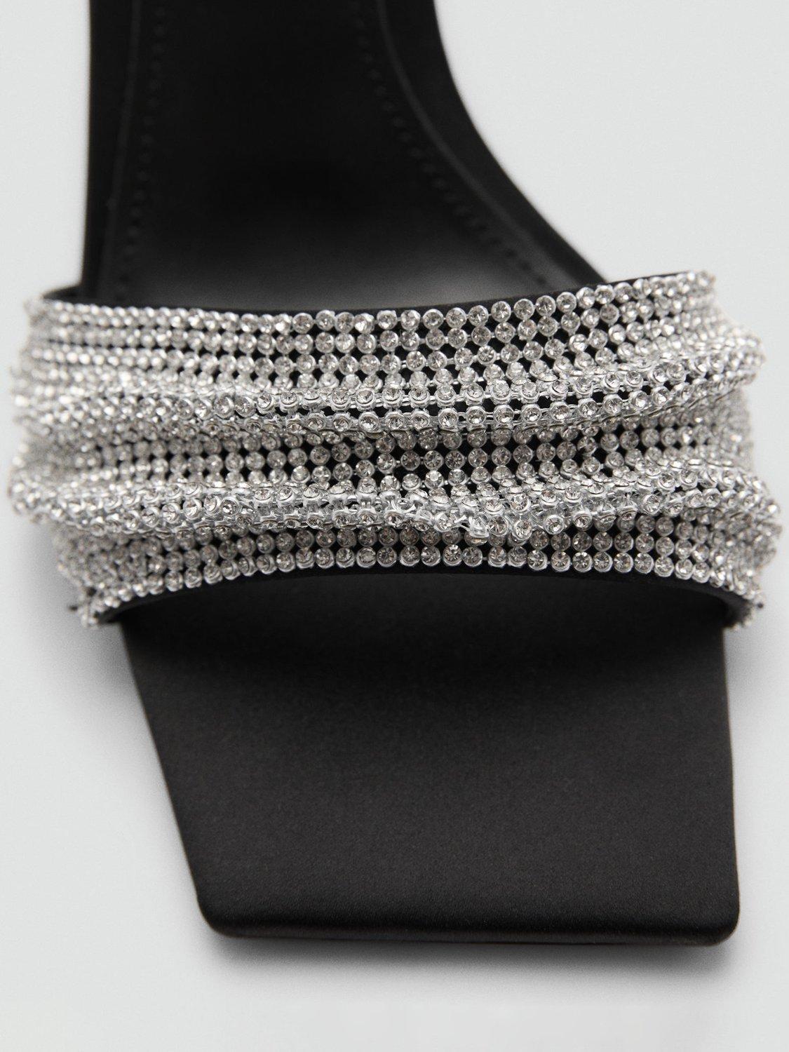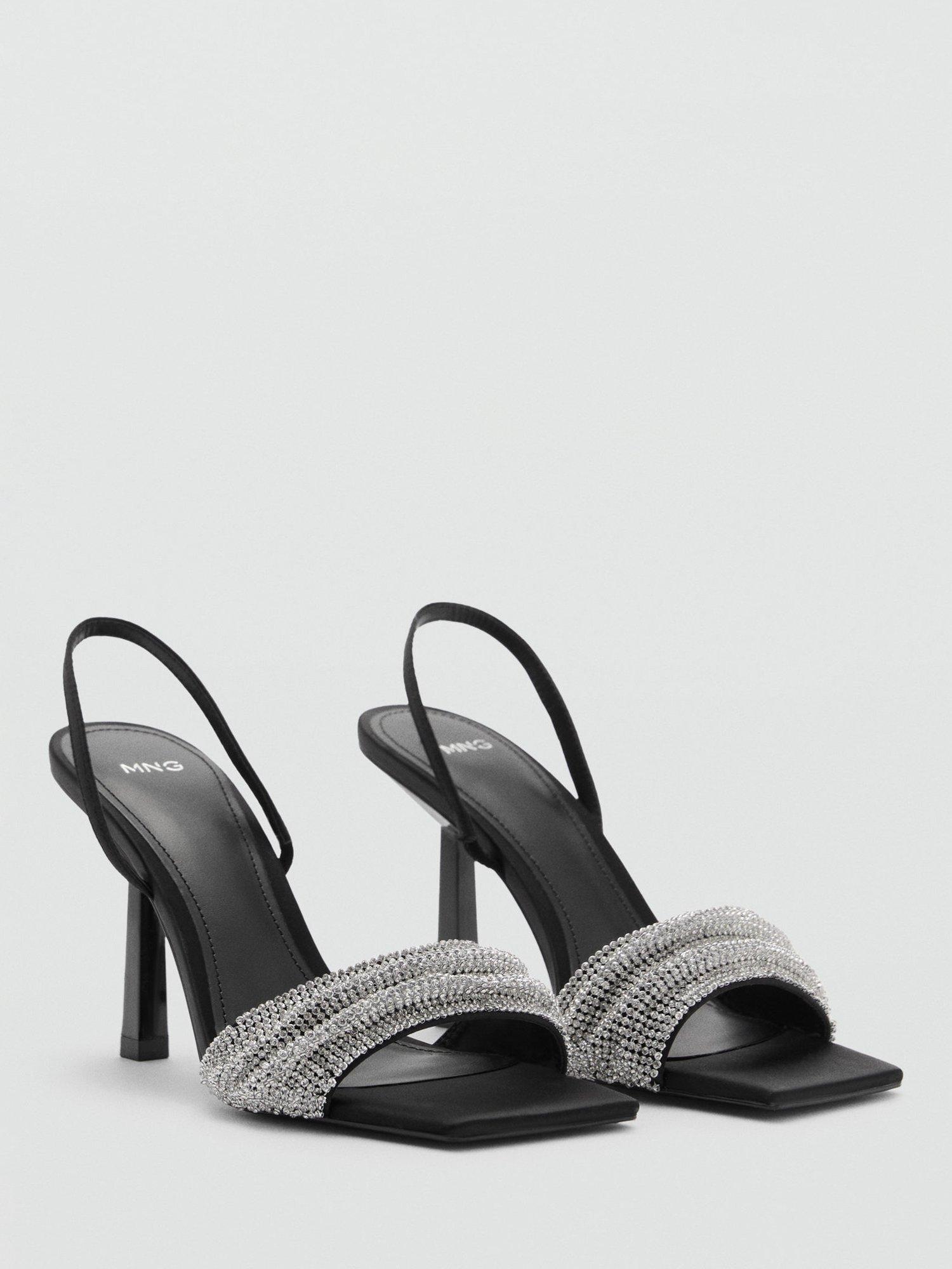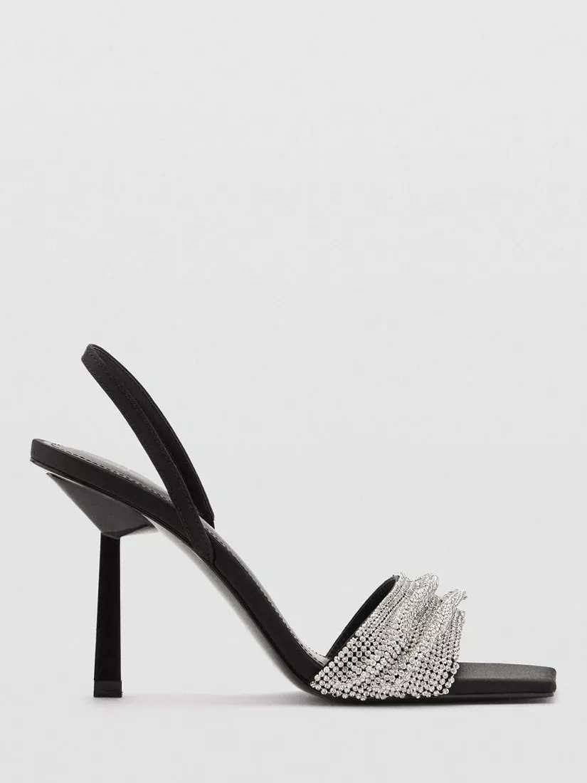 From Mango, these stiletto heel sandals are elevated with a shimmering front strap and completed with square toes.