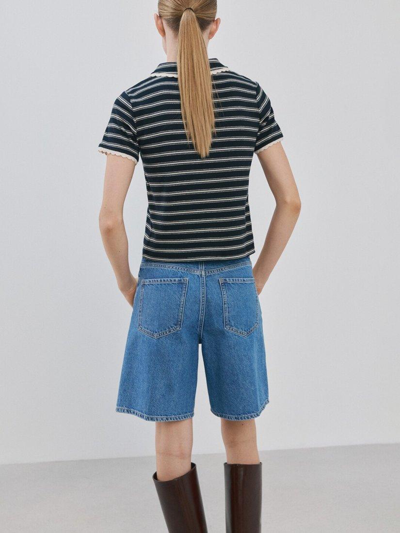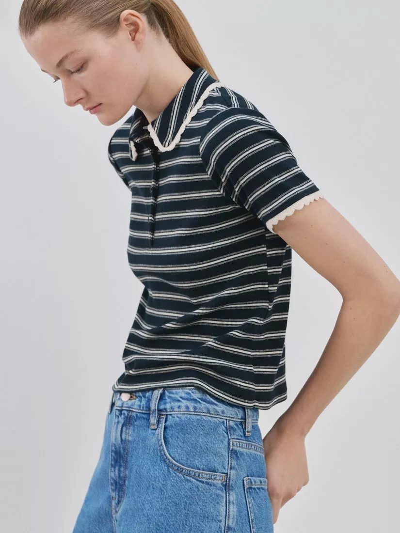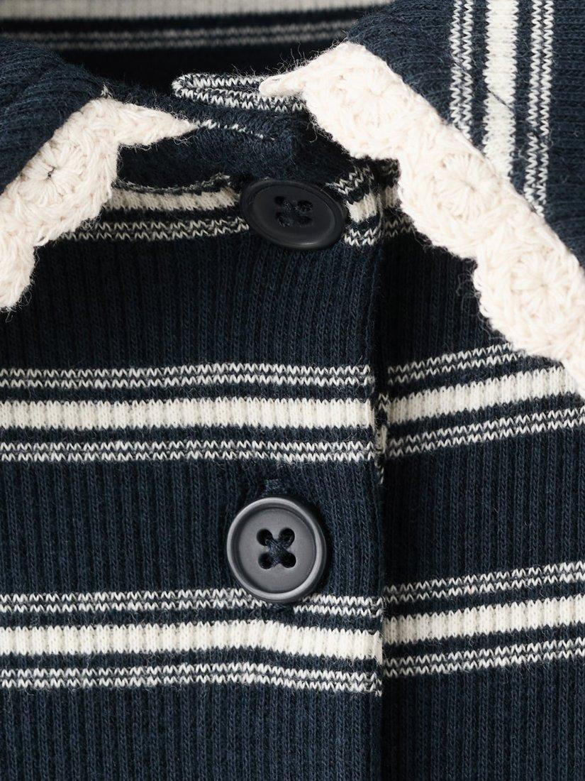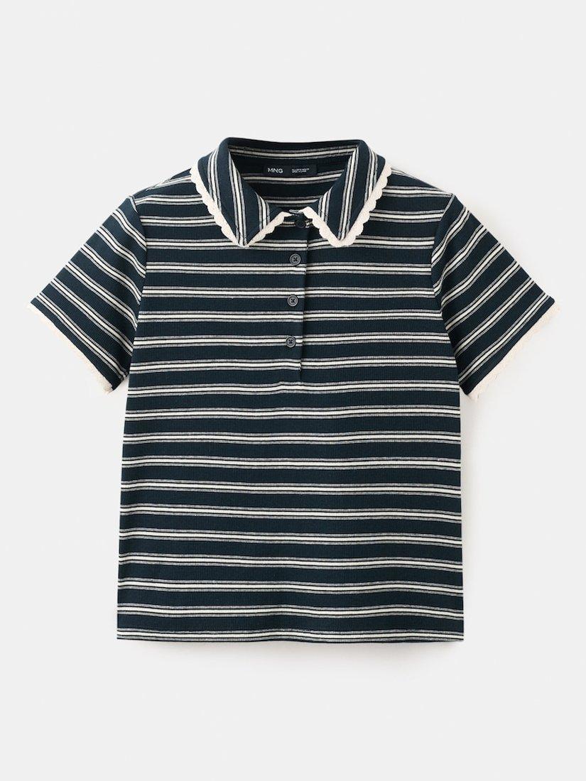 MangoStripe Ribbed Polo Shirt, Navy/Multi