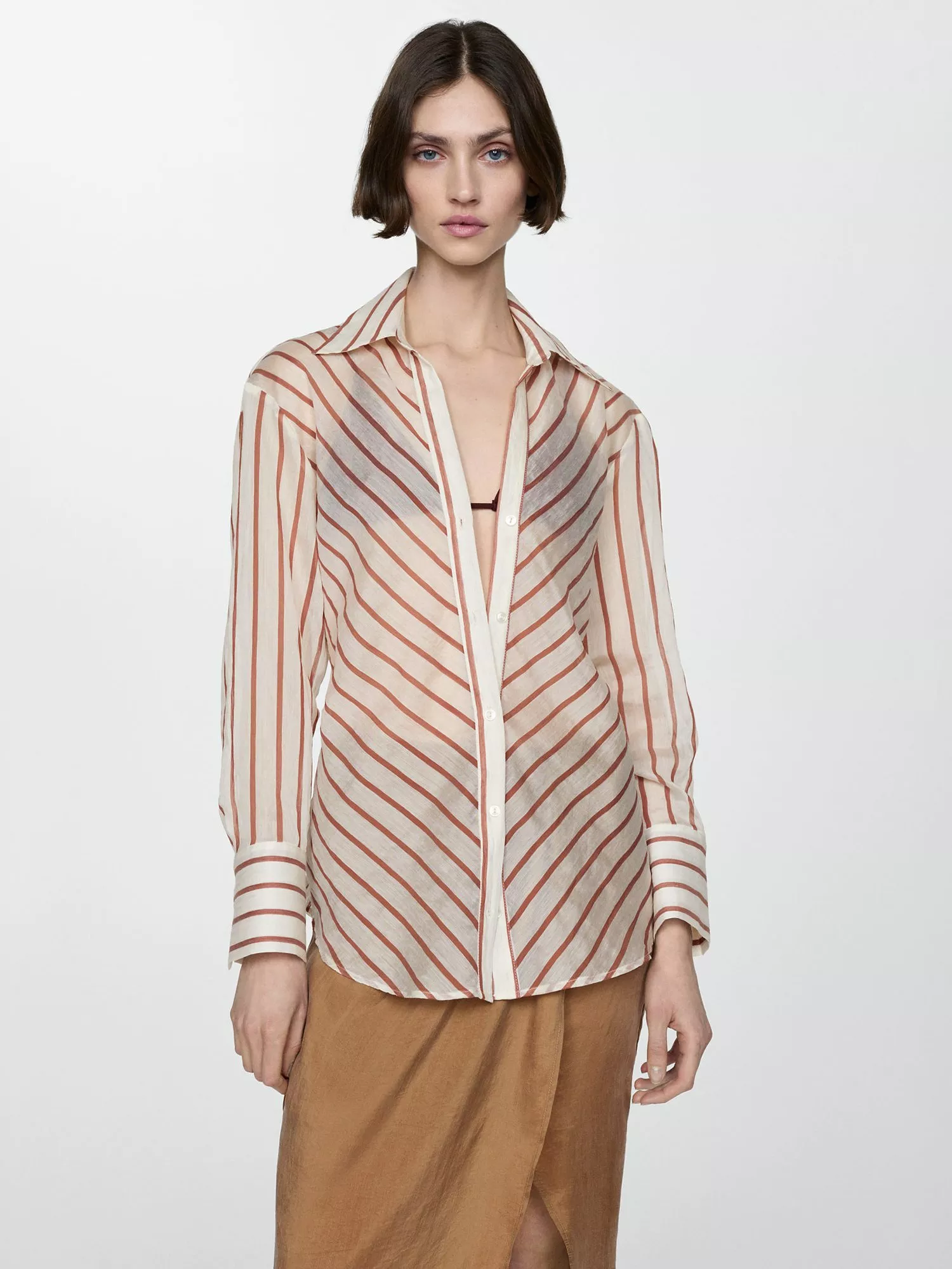 An effortless choice, this blouse from Mango flatters the figure with its striped pattern.
