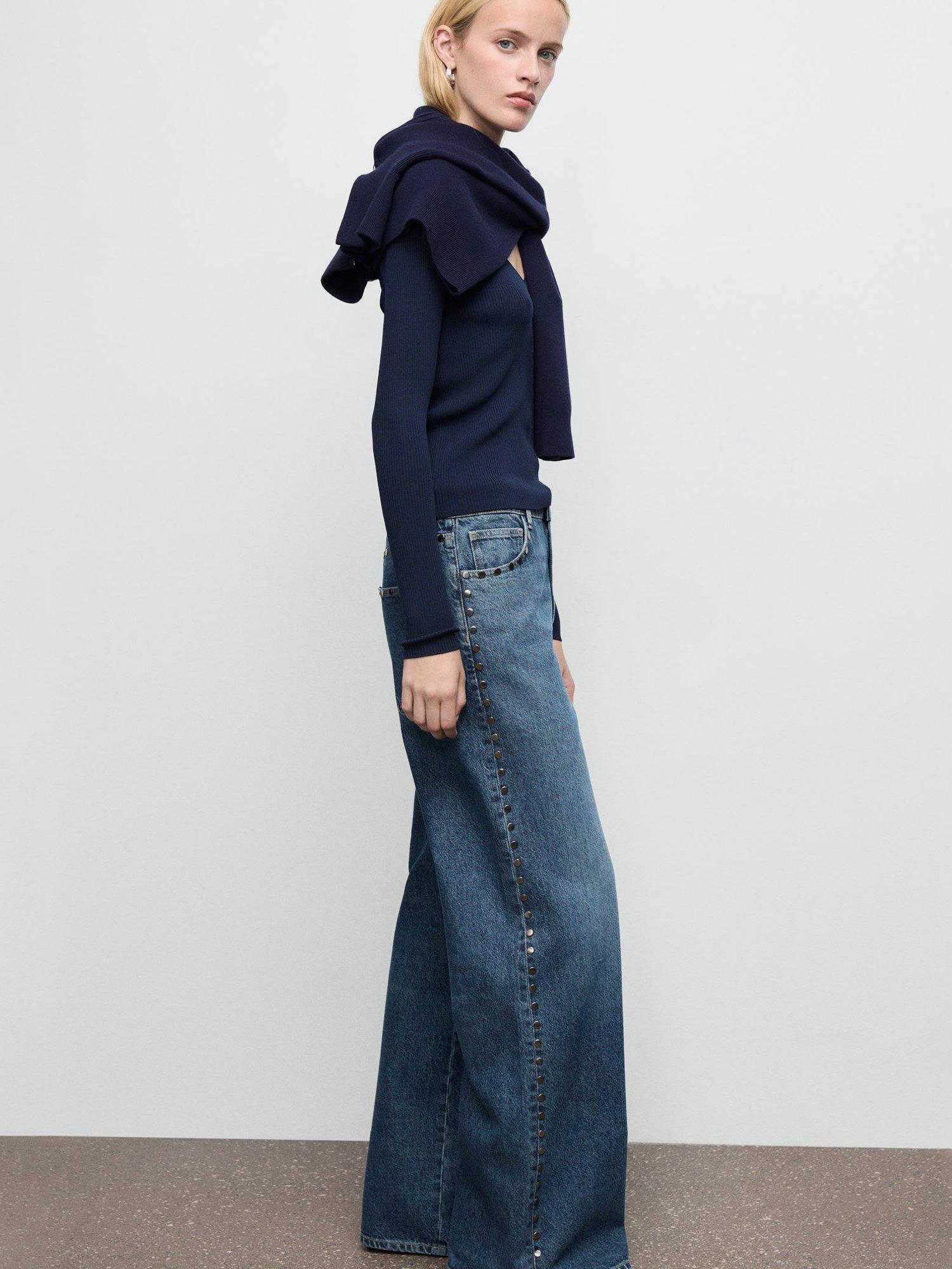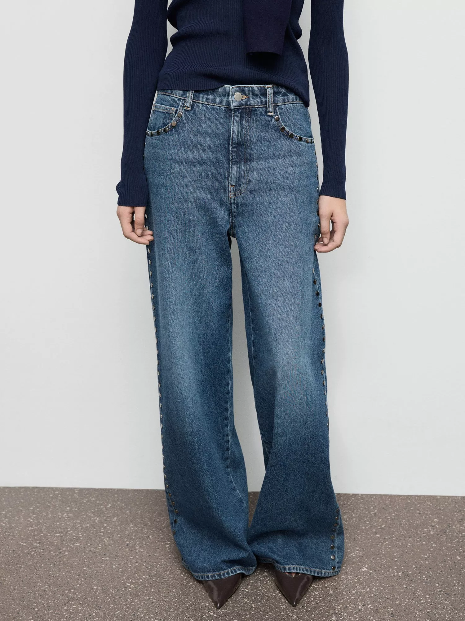 Exaggerated wide leg jeans from Mango. Made from pure cotton featuring a mid rise and a classic zip and button fly, they fall to a full-length.