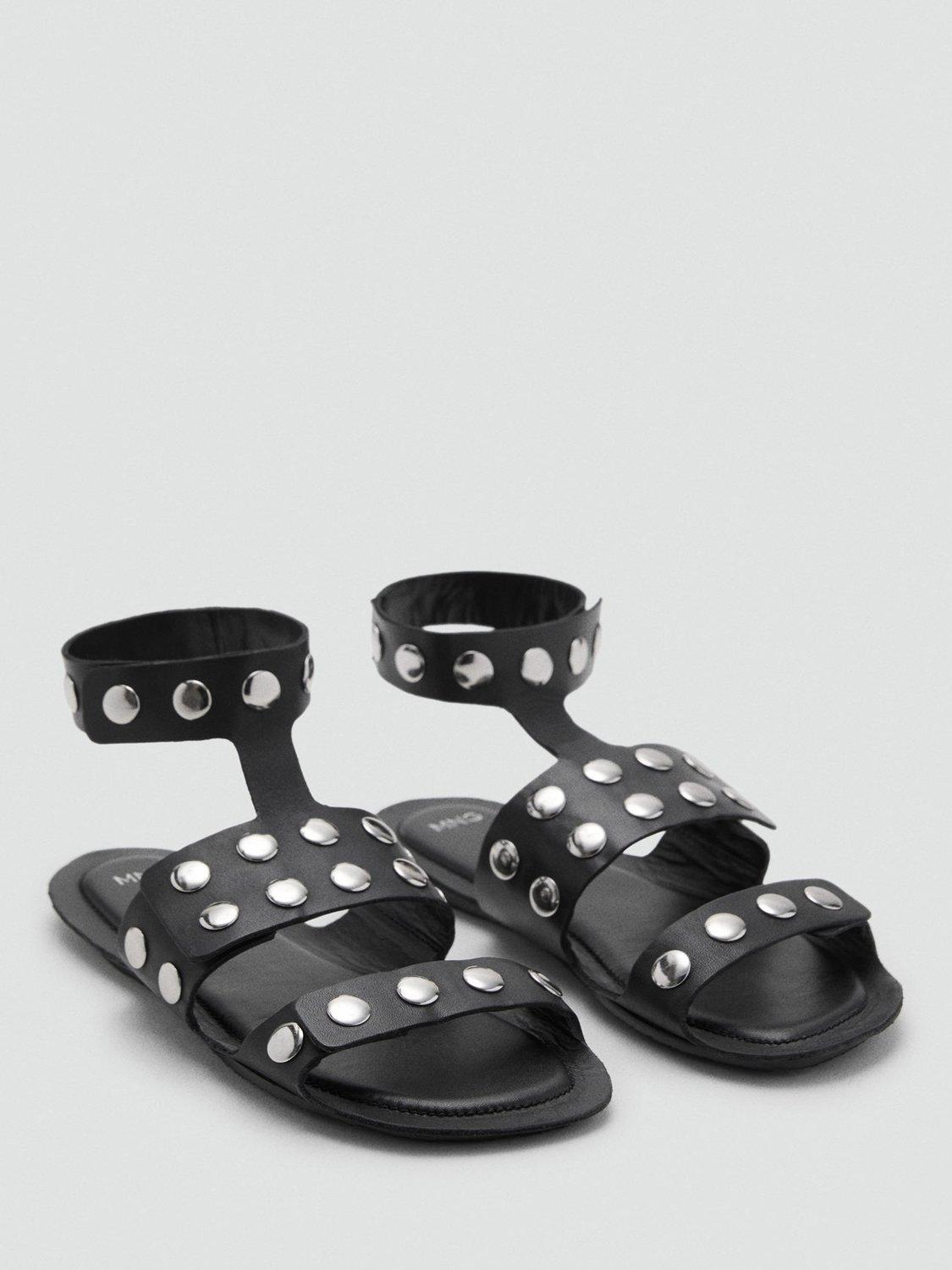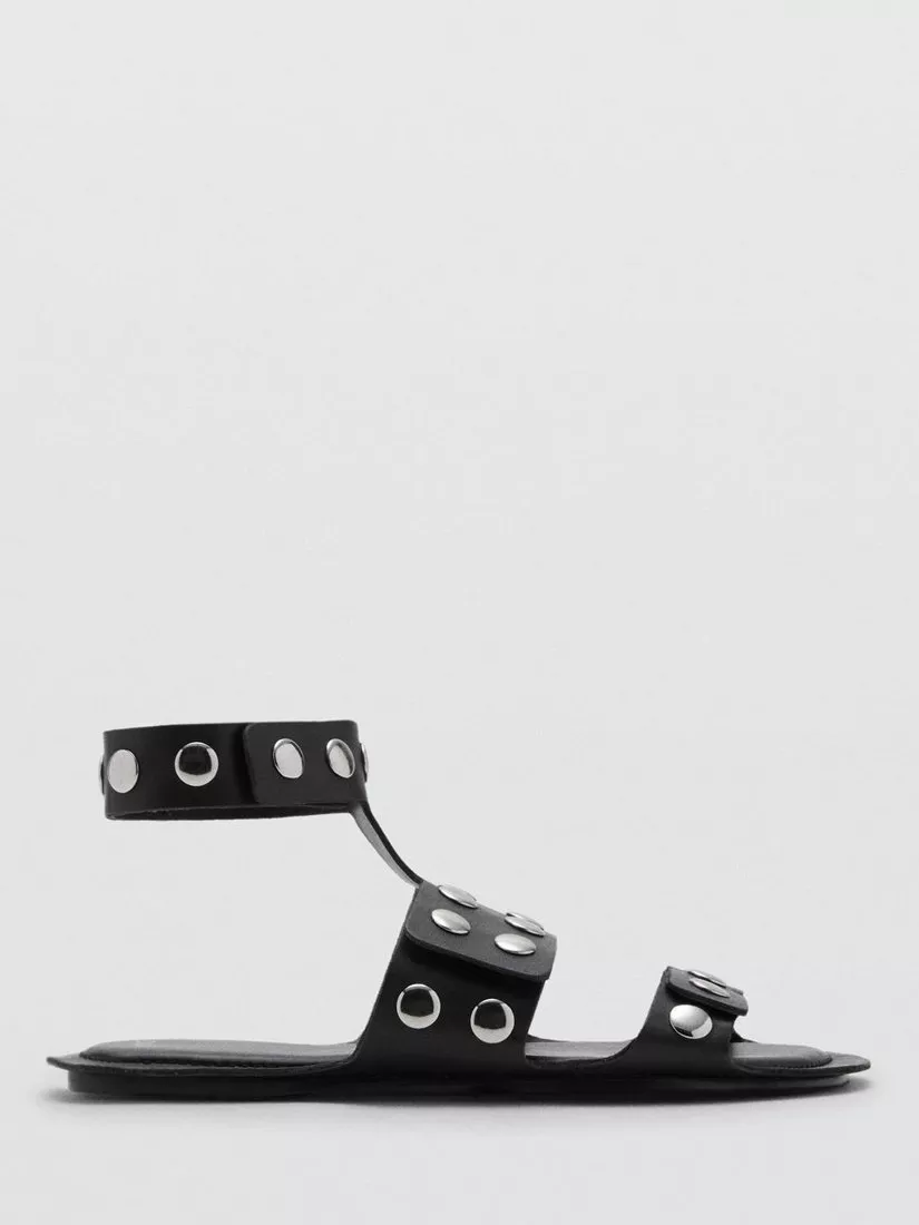 Flat leather strappy sandals, designed for day-long support and ease. The open square toe and studded accents offer practicality and subtle style for every plan on your calendar.