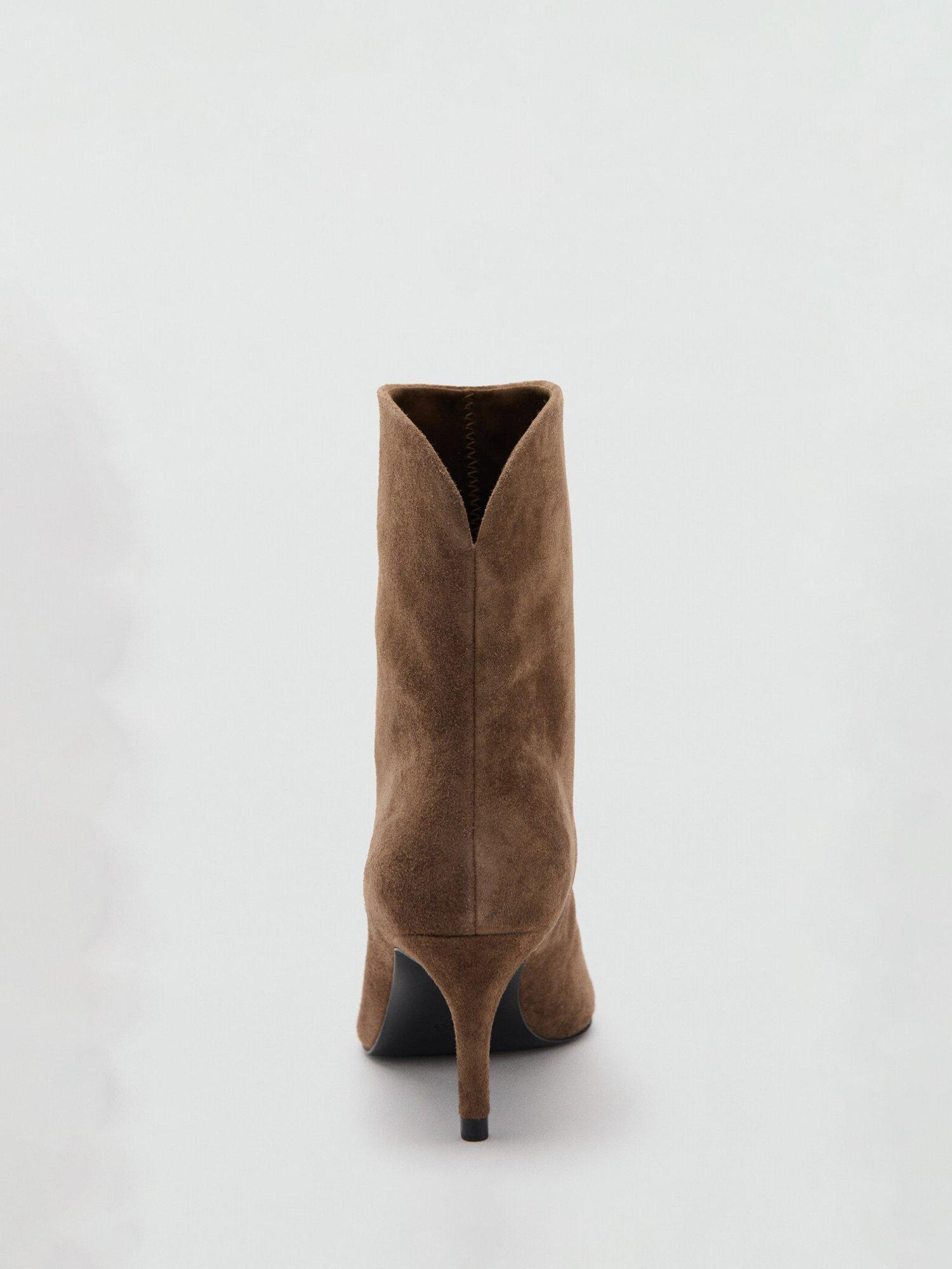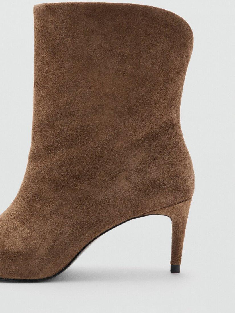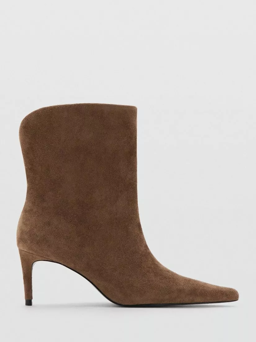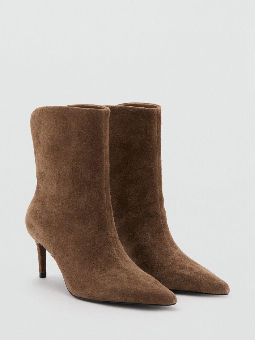 Ankle boots by Mango crafted from soft suede with a pointed toe and sleek stiletto heel. The 7cm height adds confident lift for day or night, while the rubber sole gives assured grip. Ideal for smart dressing throughout the season.