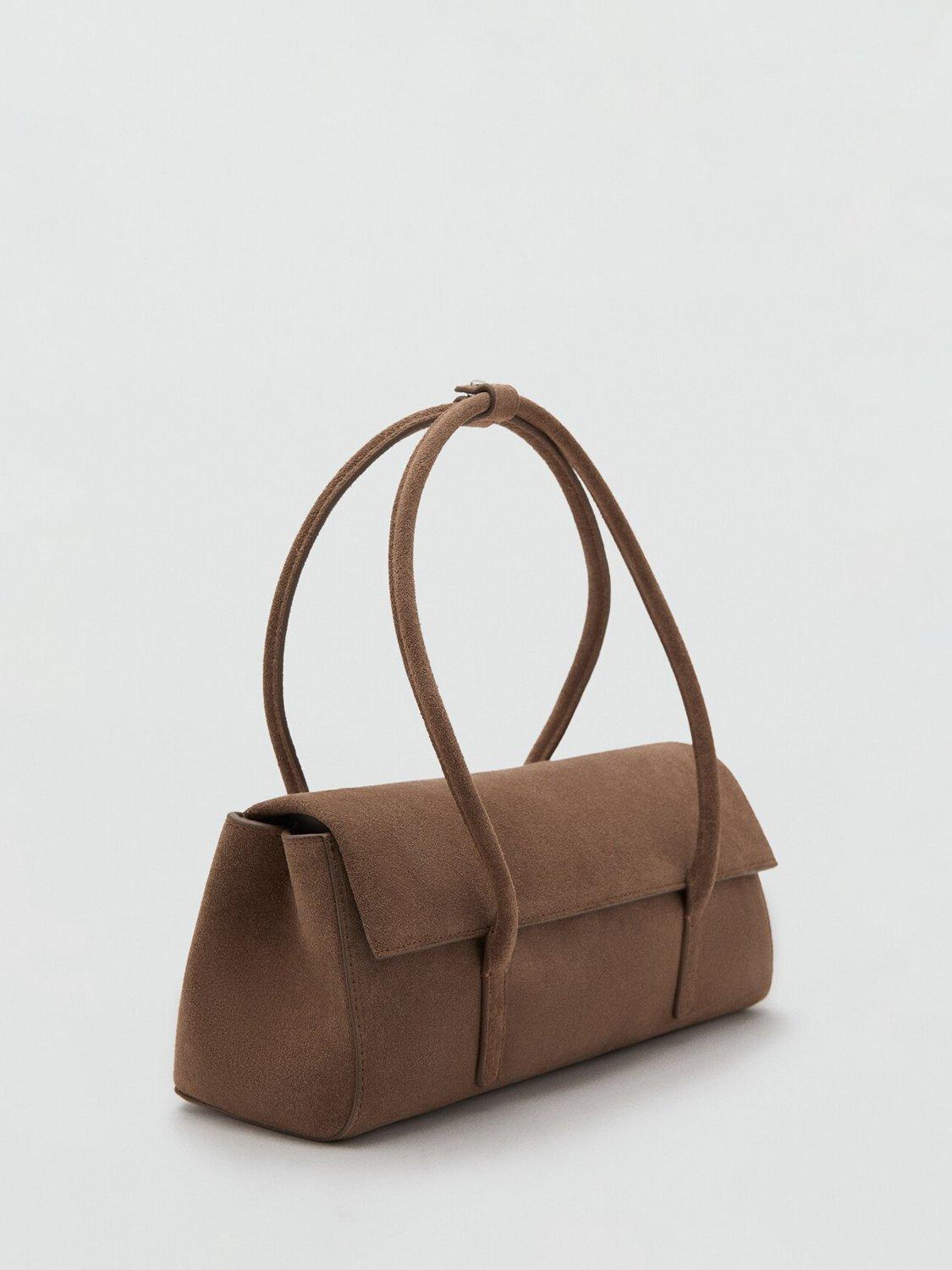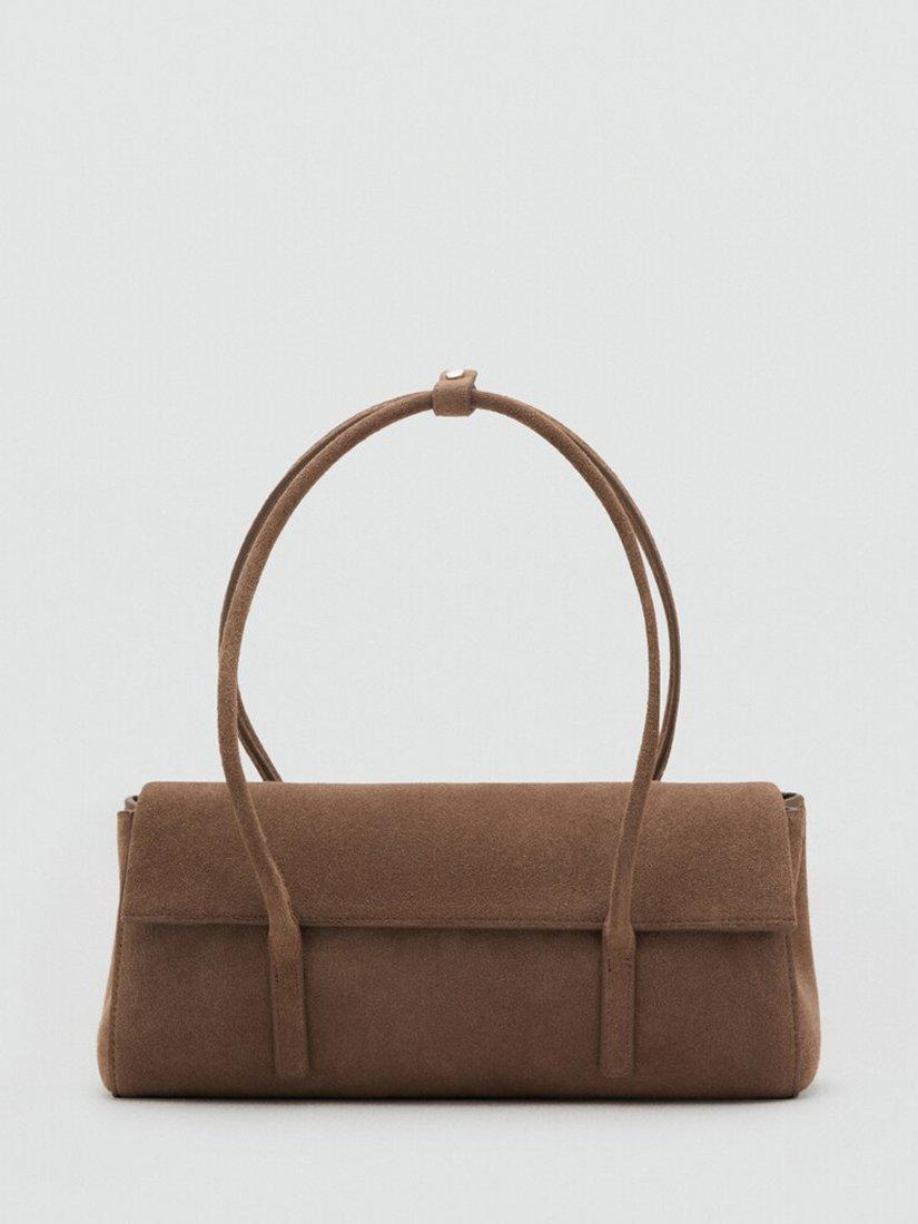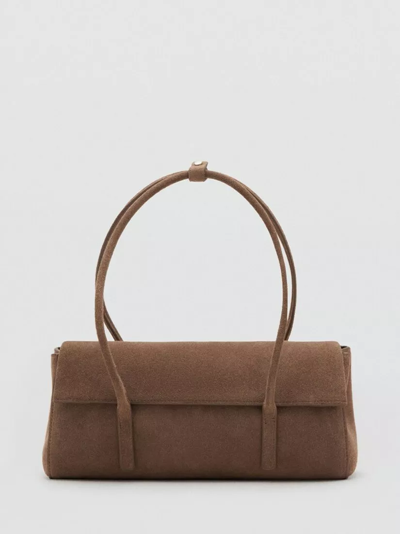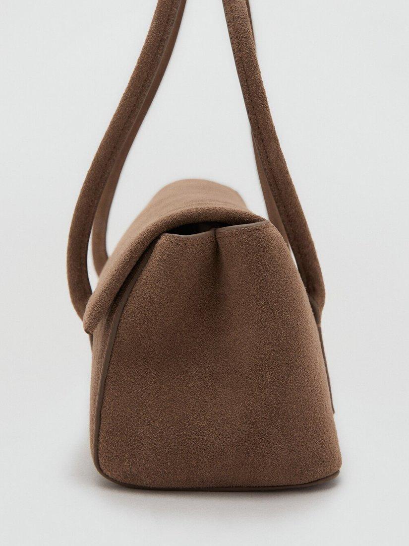 This Mango suede shoulder satchel bag is made for daily adventures, holding essentials with ease fastened with a secure magnetic closure.