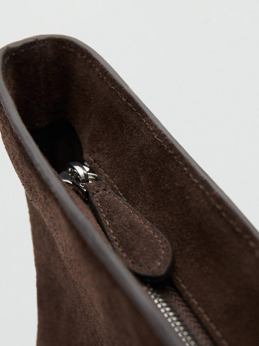 A generous suede tote with slender straps. The lined interior keeps your essentials organised while the zip fastening ensures everything stays secure wherever you go.