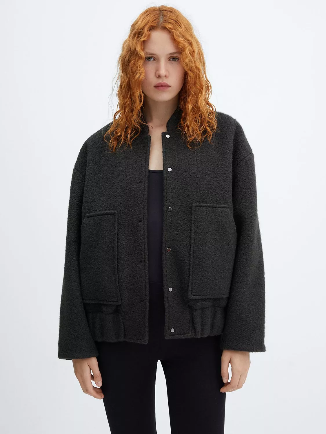 In a distinct bomber style, this jacket by Mango falls to a regular length.