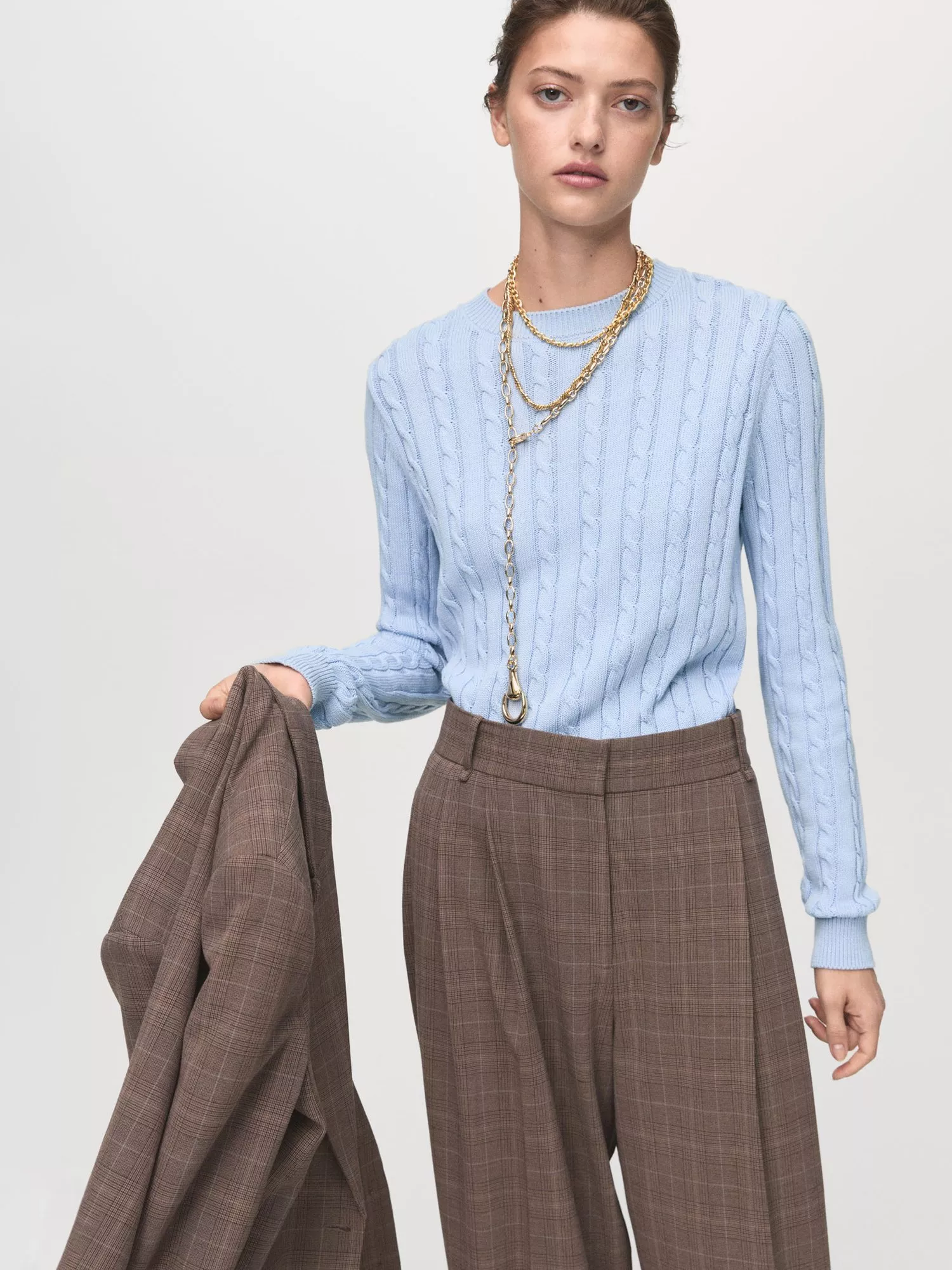 Nice and simple with a round neckline and long sleeves, this cable knit jumper by Mango makes for breathable cool-weather wear in pure cotton.