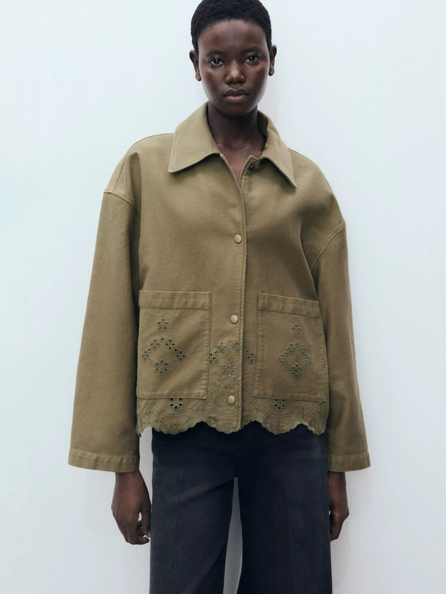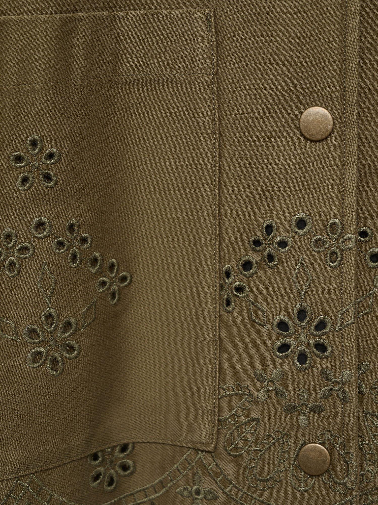Carved to a boxy silhouette, this shacket from Mango will give your outerwear edit a summery refresh. Framed with a collar and long sleeves, it's made from hardy cotton with a broderie detailed hem.