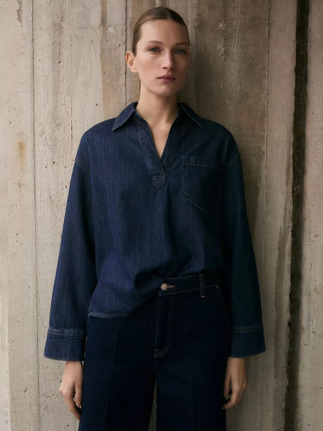 Elevating your everyday, this shirt from Mango is plain for easy mixing and matching. With a neat collared neck and long sleeves, it's made in hardy denim.