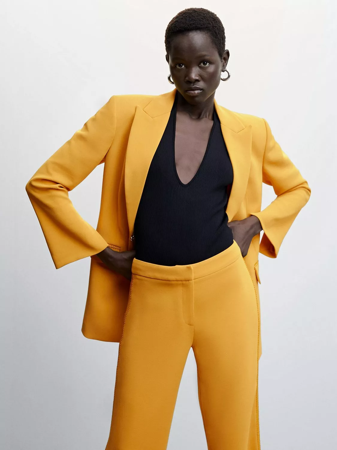 An elegant layering piece for smart events, this blazer by Mango falls to just below the waist for a contemporary profile.