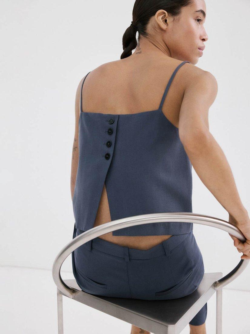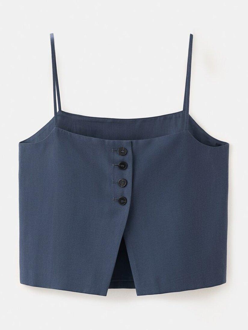A cropped shell top by Mango, made from lightweight lyocell. With a square neck and spaghetti straps, it comes in a mix-and-match ready plain colour. Effortless style for daily dressing.