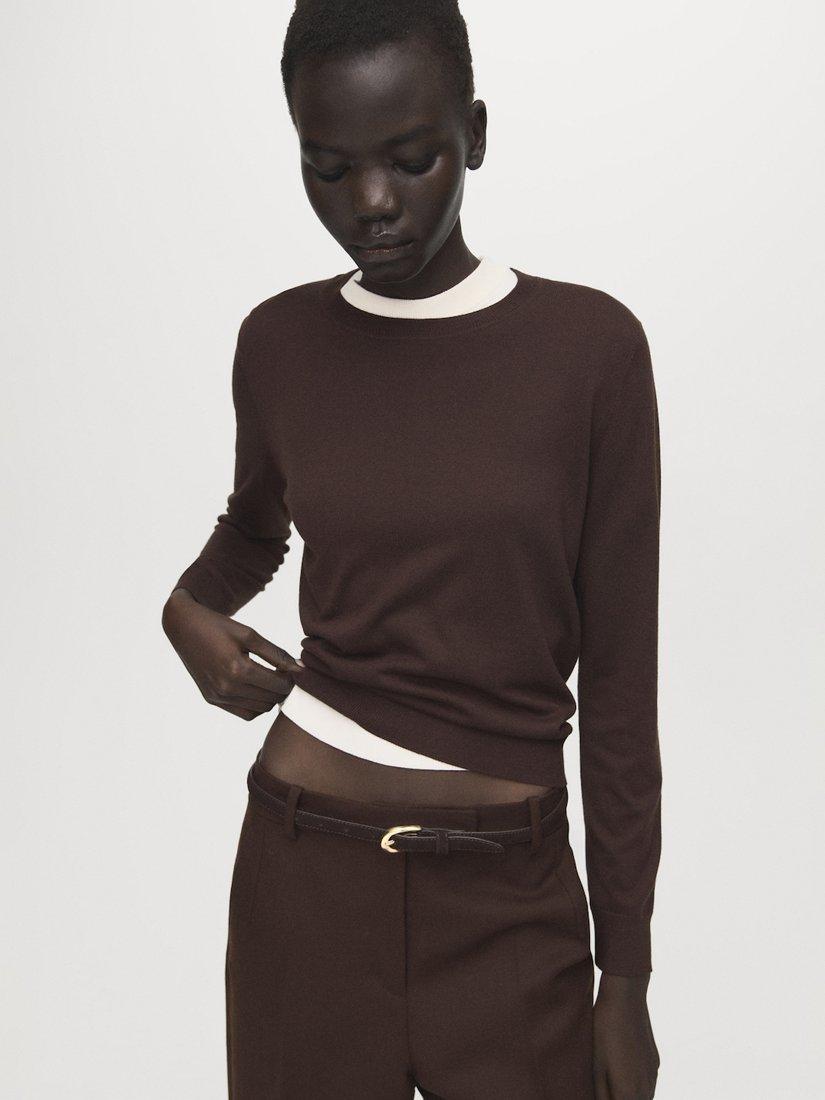 MangoTailored Drape Knit Jumper, Chocolate