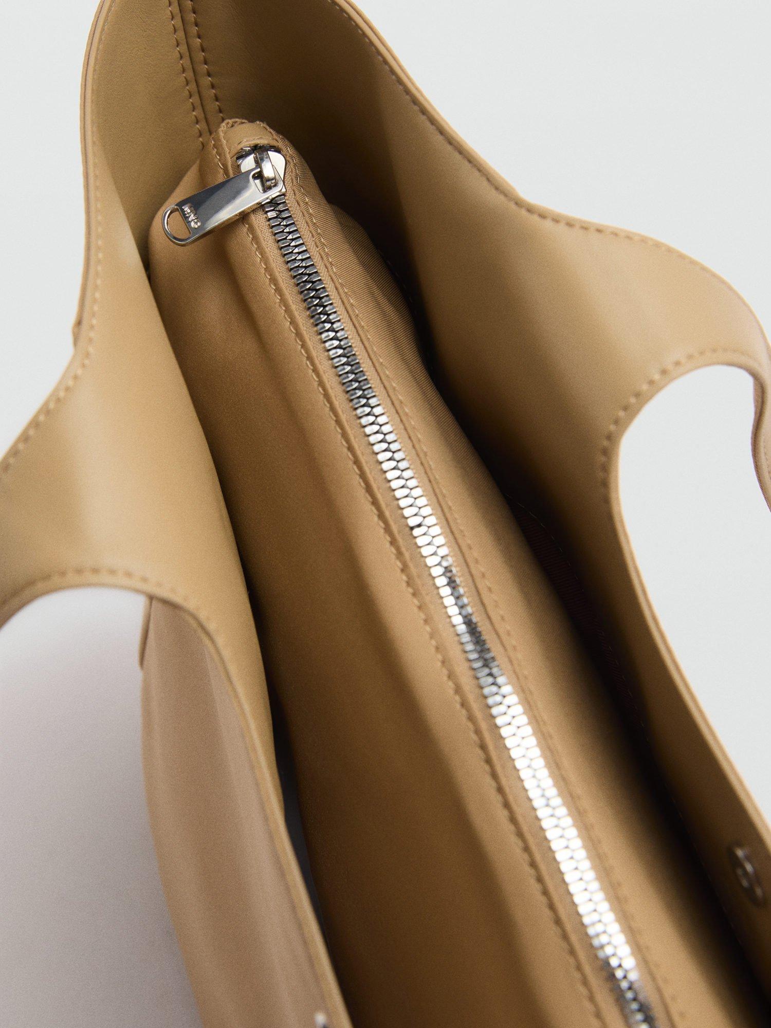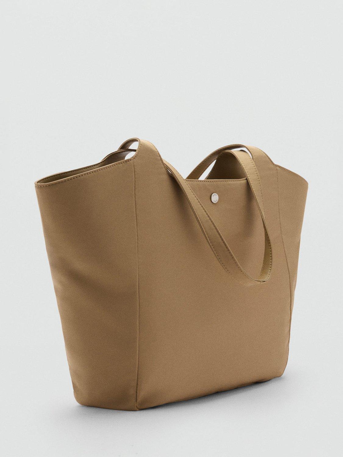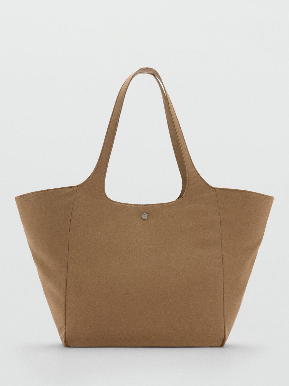 A large handbag with double straps, metallic press stud fastening and zip closure.