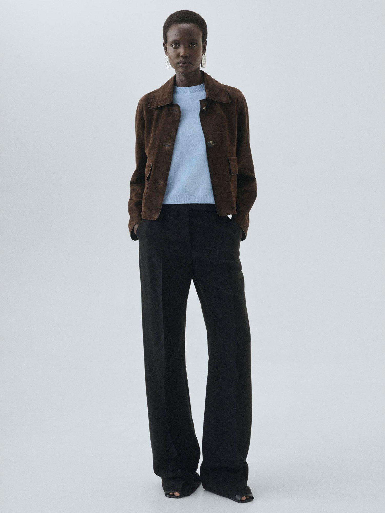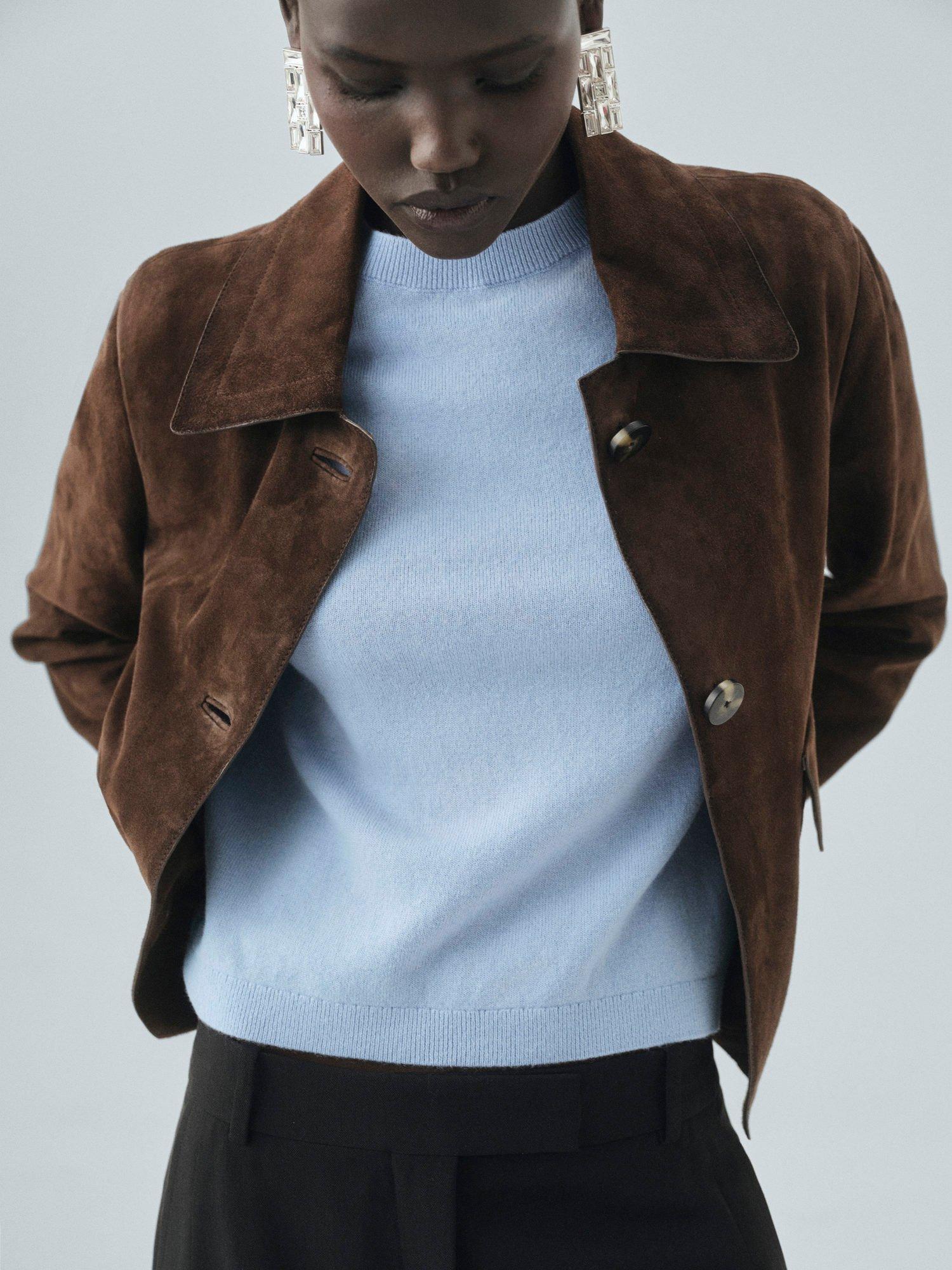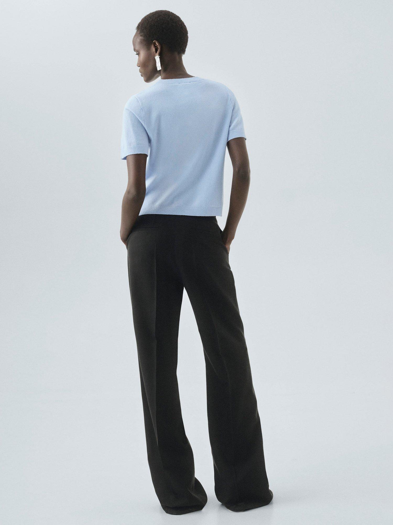 Making layering up easy with a crew neckline and short sleeves, this mid-weight jumper from Mango is a fine match for grey skies in a warming woollen blend.