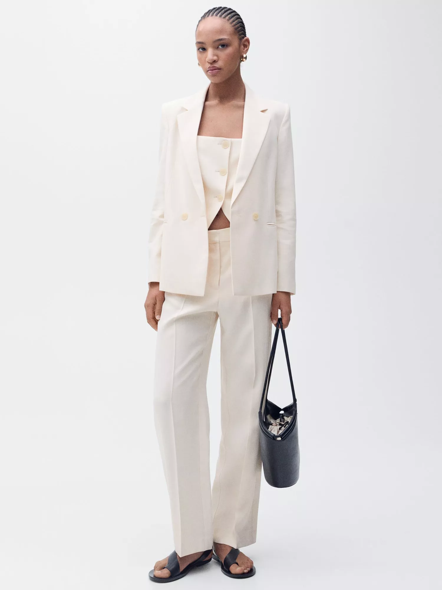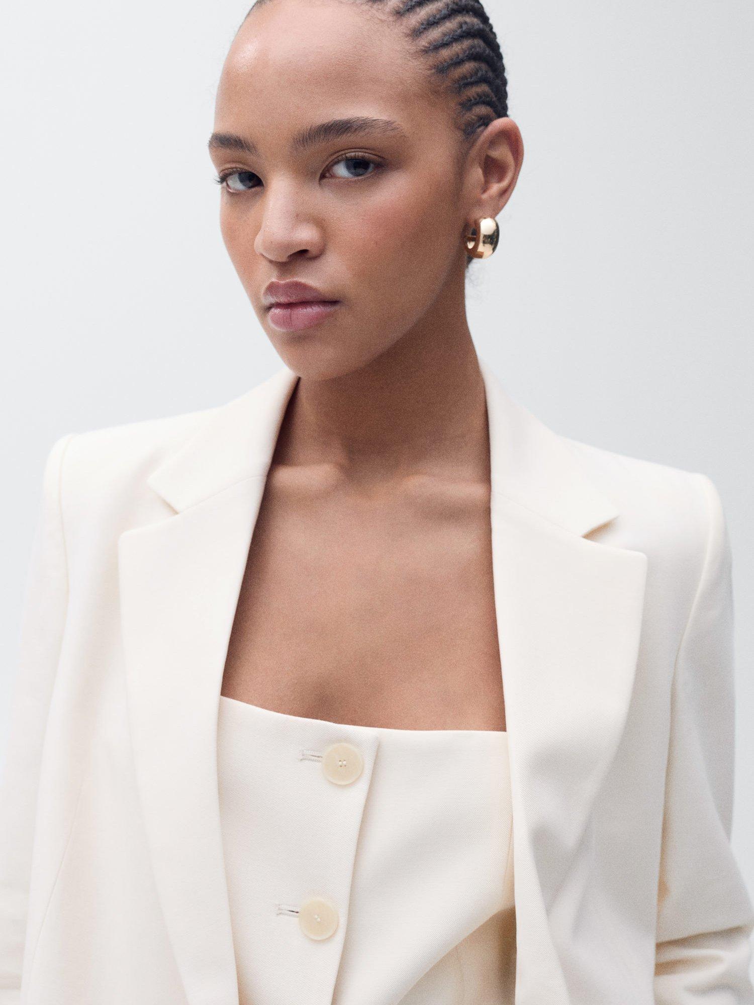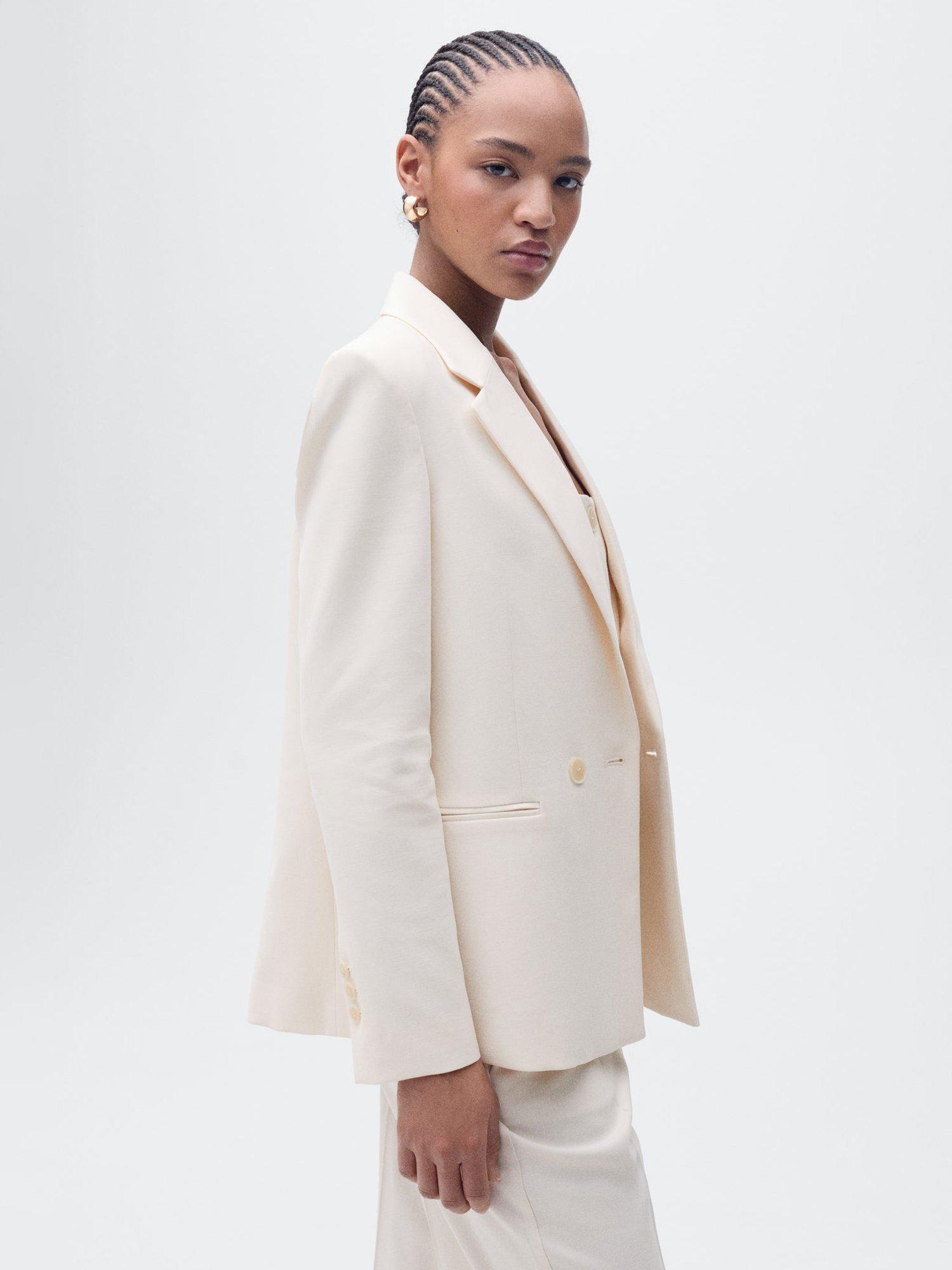 A smart outerwear piece that will pull any look together, this double button blazer from Mango sits at the hip for versatile coverage. Featuring classic collar lapels, it provides lightweight with its smooth blended fabric.