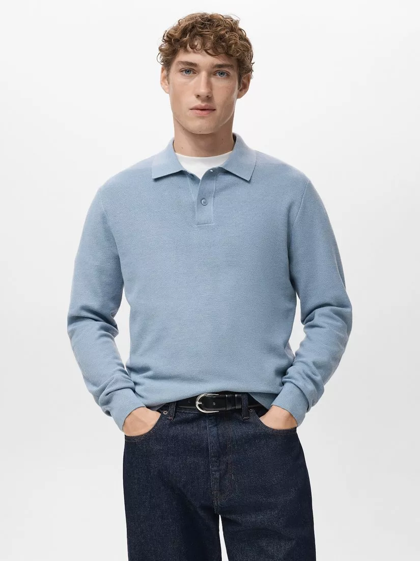MangoTen Long Sleeve Polo Shirt, Pastel Blue