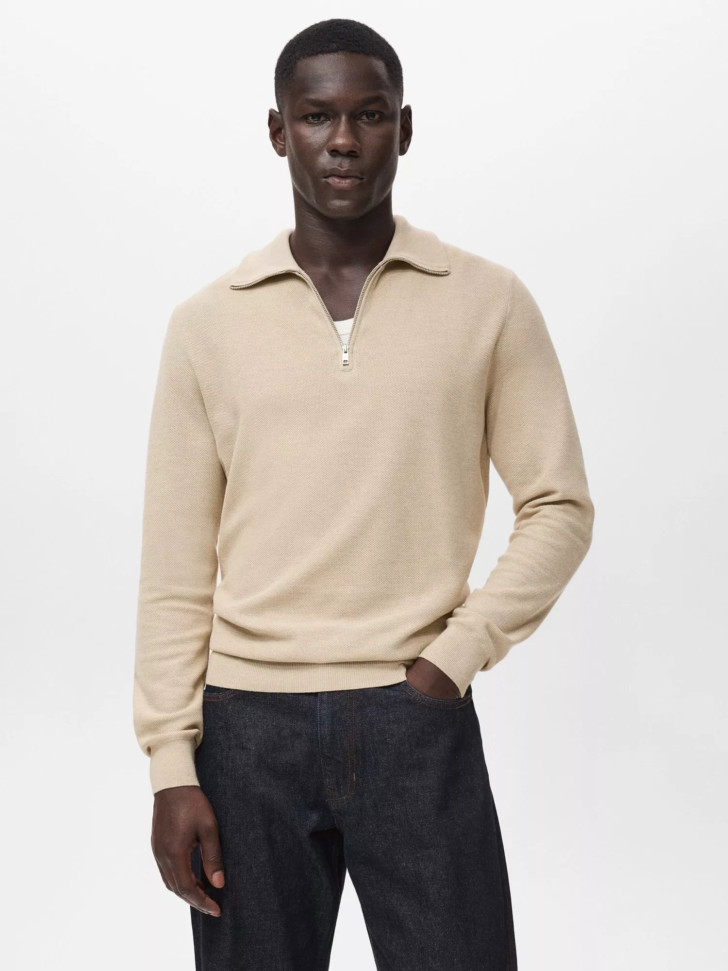 The core of any casual edit, this zipped jumper from Mango is made to layer over a classic shirt or beneath a cosy coat.