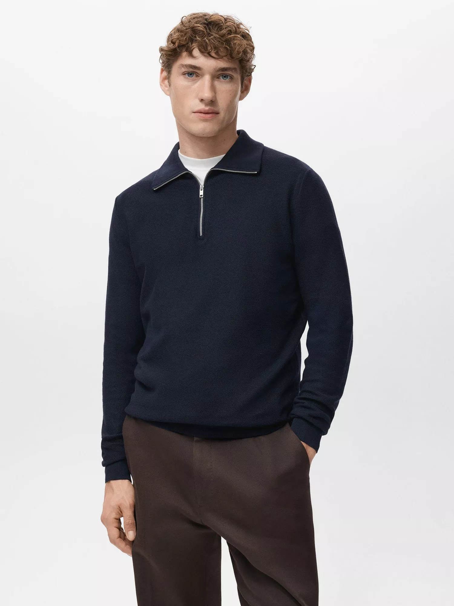 The Mango Tenp Jumper features a fine-knit fabric made with breathable cotton. A straight-fit silhouette, it's framed with a versatile zip neck and finished with a ribbed knit on the neckline, cuffs and hem.