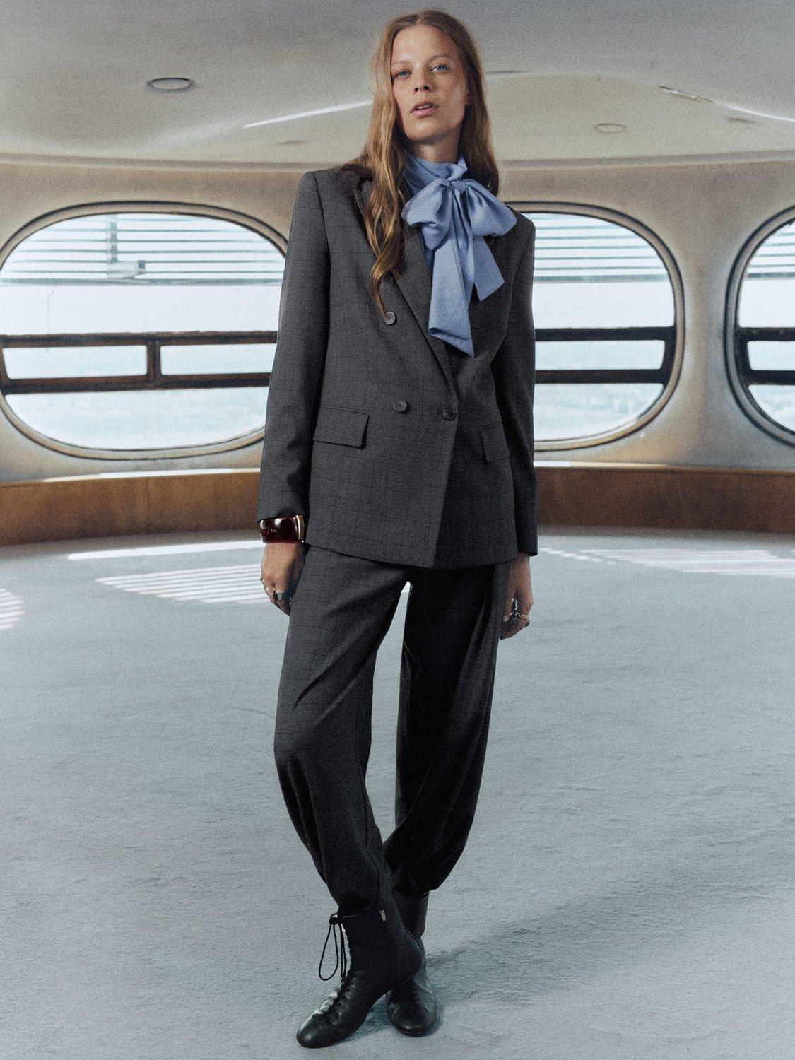 Elevating your look with ease, this blazer from Mango is double breasted and finished with subtle checks.
