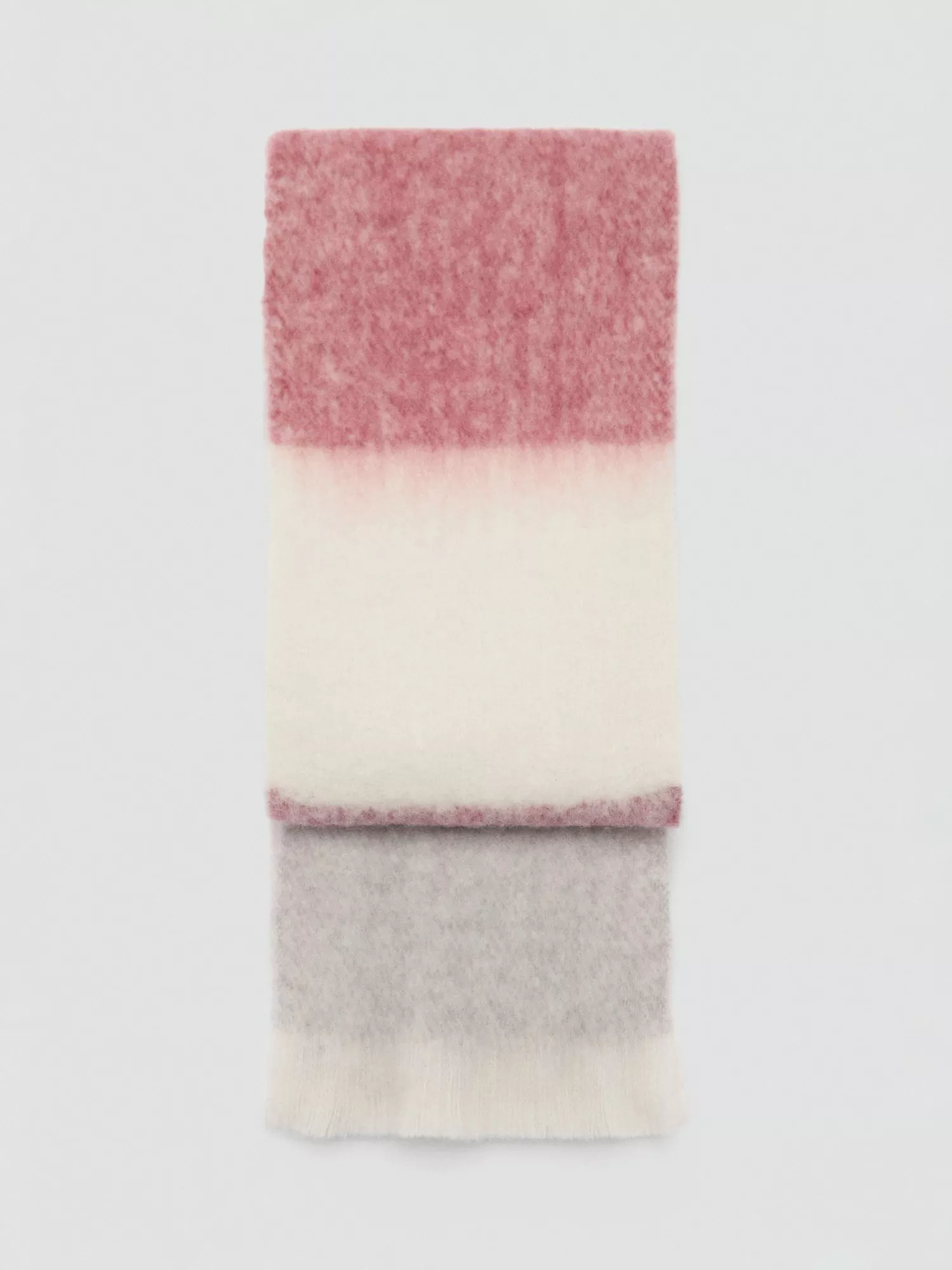 MangoTeseo Colour Block Scarf, Dark Pink/Multi