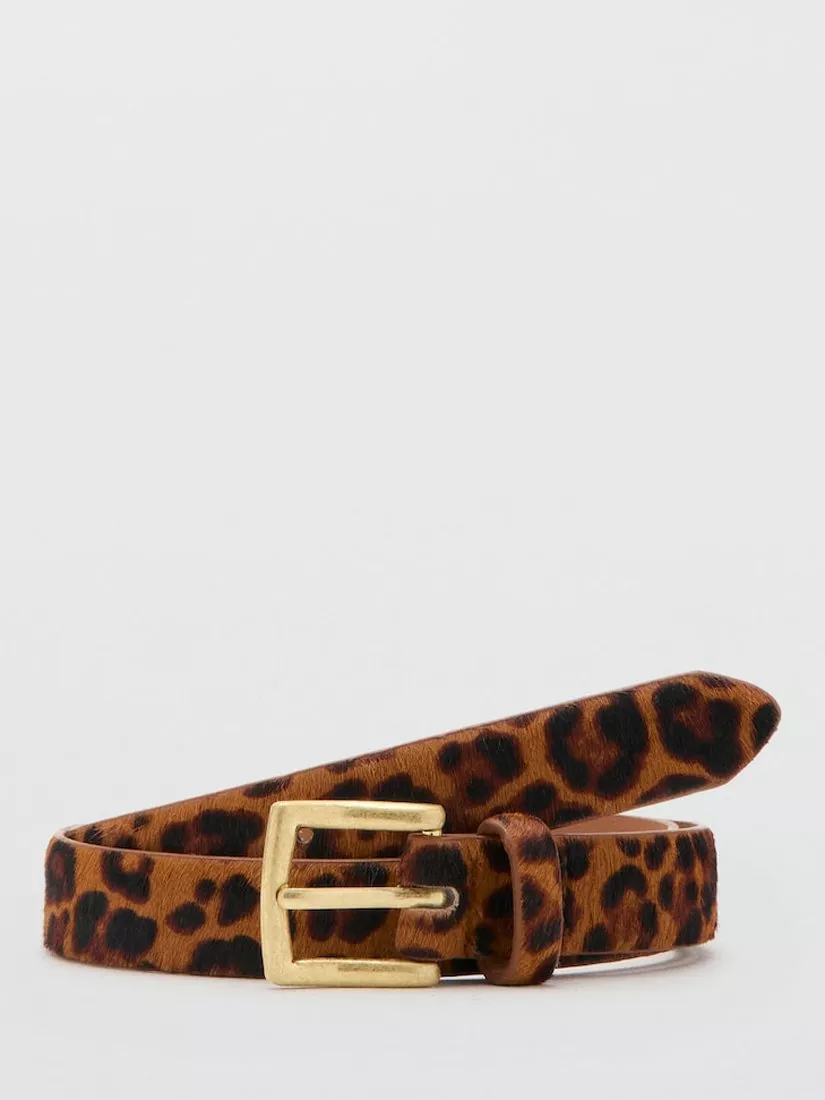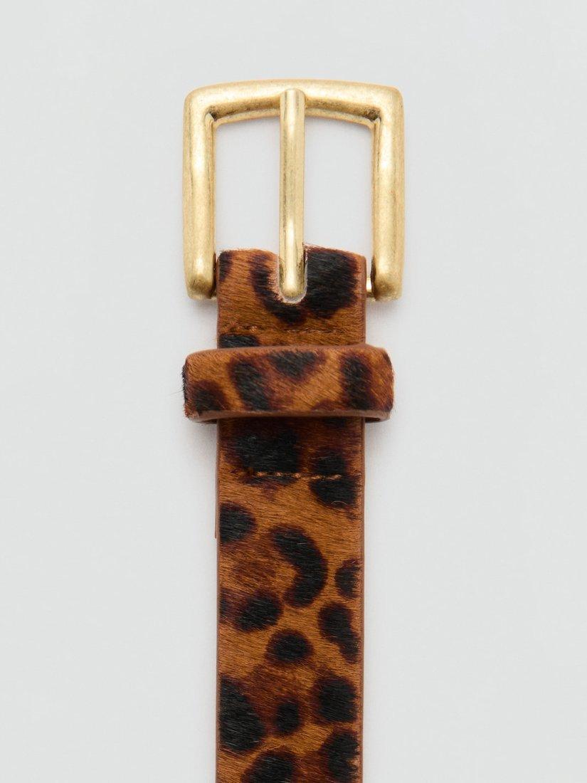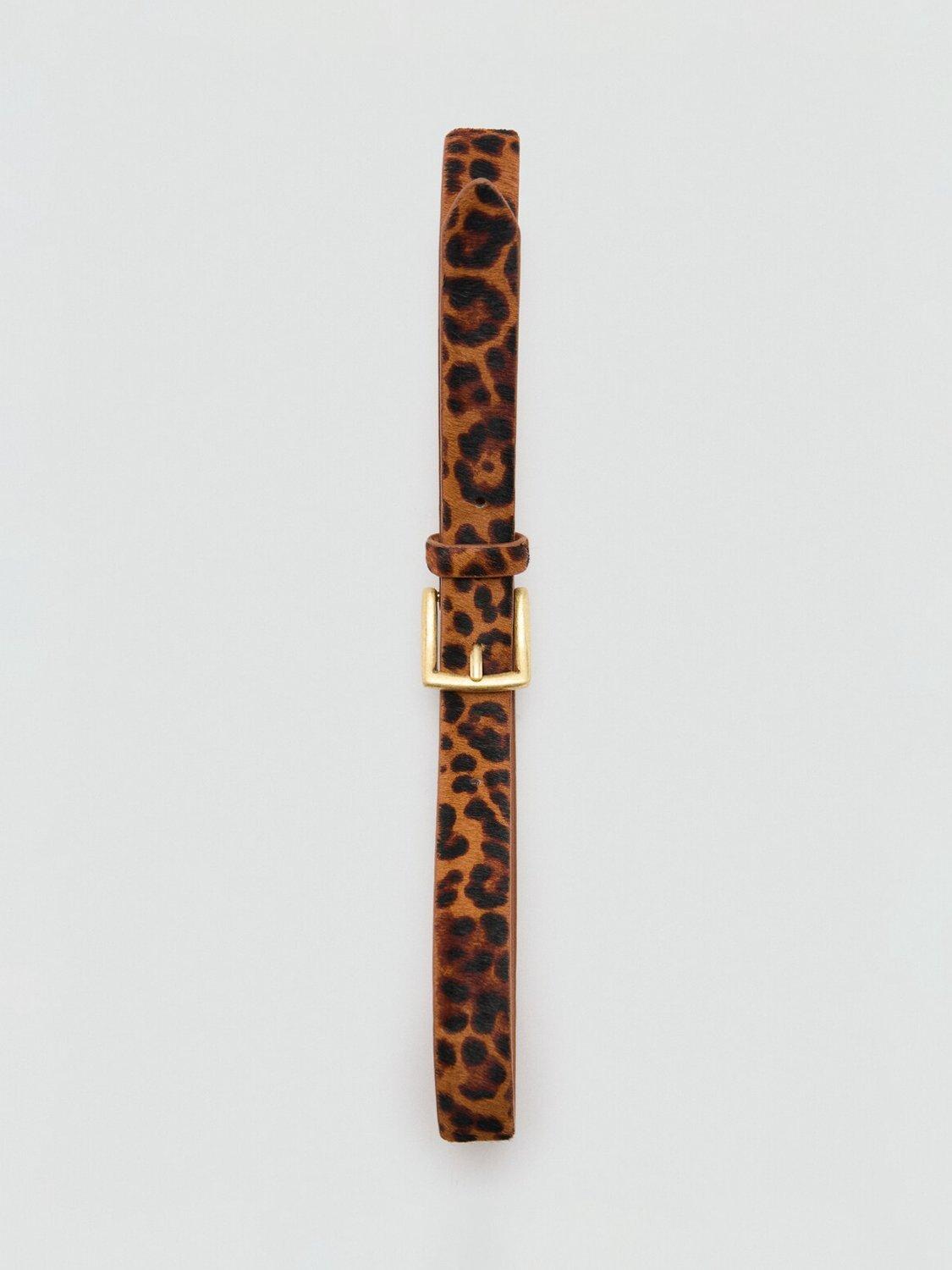 MangoTextured Leopard Print Pure Leather Belt, Brown